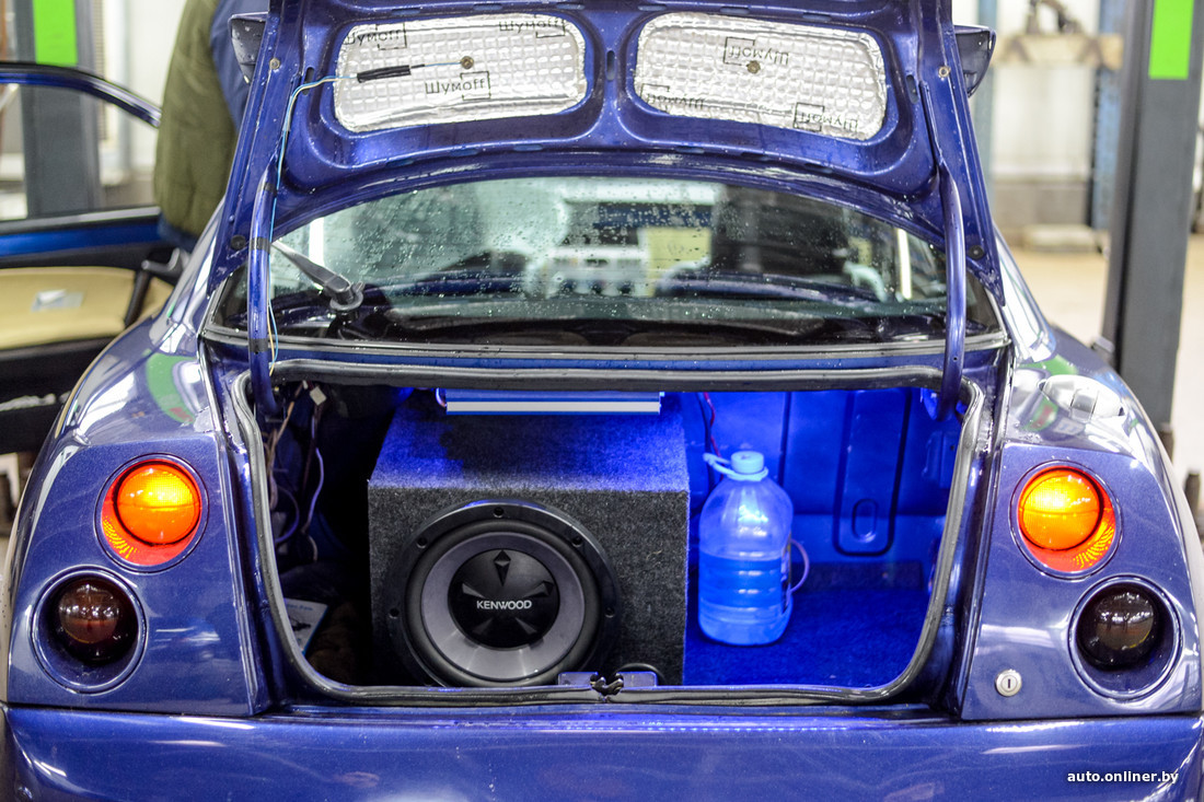 Итак, в продаже — синий Fiat Coupe с пробегом 175 000 км родом из 1994 года. Под капотом с дополнительными креплениями — бензиновый двигатель объемом 2 литра. Коробка передач — механическая, привод — передний. Заметны следы преобразований кузова, предусмотрен и не видимый невооруженному глазу тюнинг. Например, по периметру машина обклеена виброшумоизоляцией. Установлена профессиональная музыка Alpine, усилитель, сабвуфер. Комфорт увеличен за счет кожаного салона и двухрежимного подогрева передних сидений. Потолок перетянут алькантарой, панель и центральная консоль перетянуты белой кожей, в двери встроены «подушки». Внутри — синяя подсветка, вся проводка перетянута, в бардачок выведен разъем USB. Передние и задние бамперы сделаны в единственном экземпляре, спереди установили ксенон, сзади — диодные лампы. Передние фары затонированы пленкой. Из полезных бонусов — парктроник с указанием расстояния и сигнализация с функцией остановки двигателя.