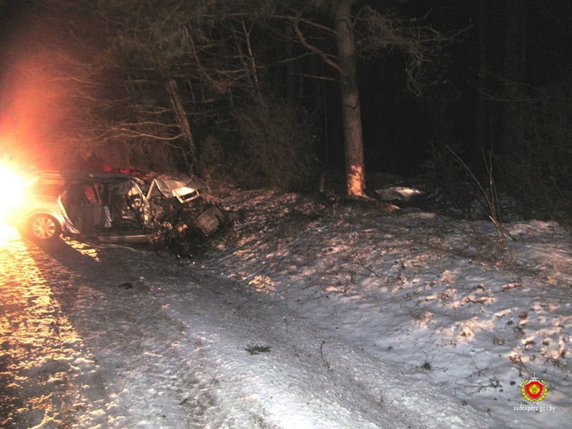 Серьезная авария произошла вчера около 21:00 возле агрогородка Пески Мостовского района. Перед автомобилем Audi А6 2003 г. в. на проезжей части неожиданно появился лось. После столкновения с животным легковушка съехала в кювет и врезалась в дерево. Машина получила серьезные повреждения, для деблокирования пострадавших привлекались спасатели.