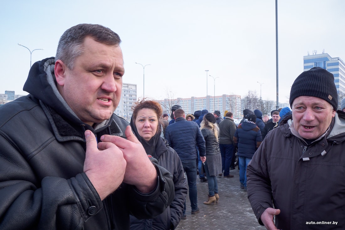 ...На парковку «Чижовка-Арены» один за одним заезжают автомобили с плафонами и желтыми наклейками на боках. Случайные прохожие, наблюдающие за процессией, недоуменно переглядываются: «Что за сходка?» Наконец кто-то проявляет осведомленность: «Это 135 бастует».