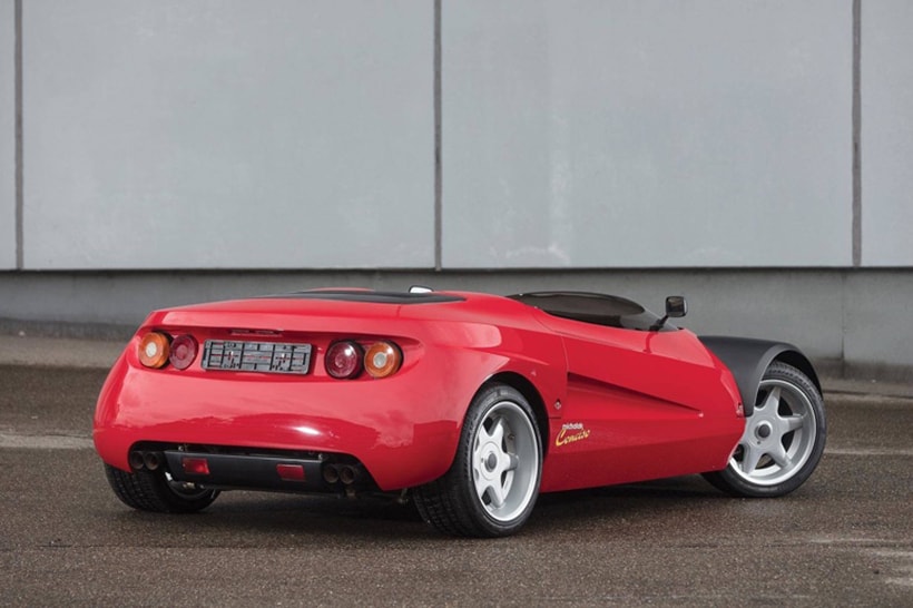 Спорткар построен на шасси Ferrari 328 GTS образца 1989 года. У машины уникальный кузов «баркетта» с широкими передними крыльями из некрашеного пластика и интегрированными фарами. У нее нет крыши и дверей, а в салоне сделаны специальные отсеки для хранения двух шлемов.