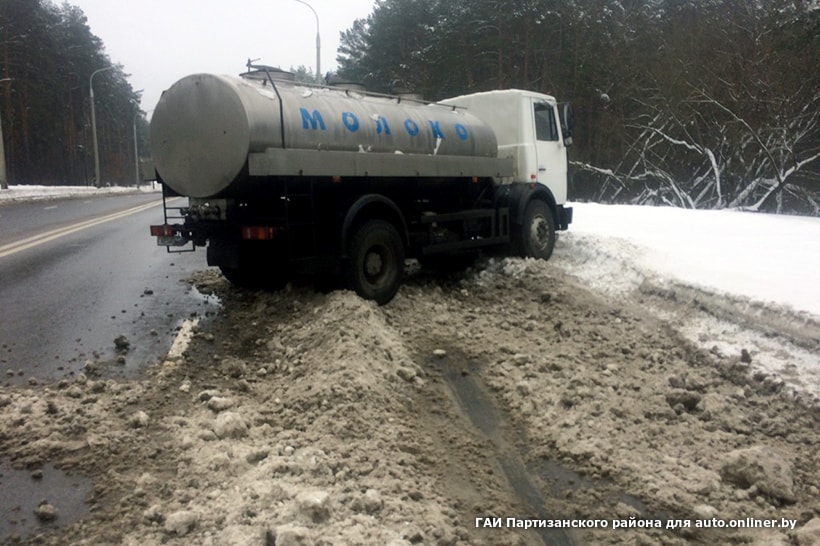 — Водитель молоковоза рассказал, что его подрезал автомобиль Toyota. Видно эту машину на видео, но номера не разглядеть, — рассказал корреспонденту Onliner.by очевидец. — Но там каша была в первой полосе. Скорее всего, МАЗ ехал в крайней правой полосе — там, где автобусная остановка, снега не было — это видно. Потом начал перестраиваться влево, но там была Toyota. А когда грузовик возвращался обратно, то зацепил этот снег. Как результат — занос.
