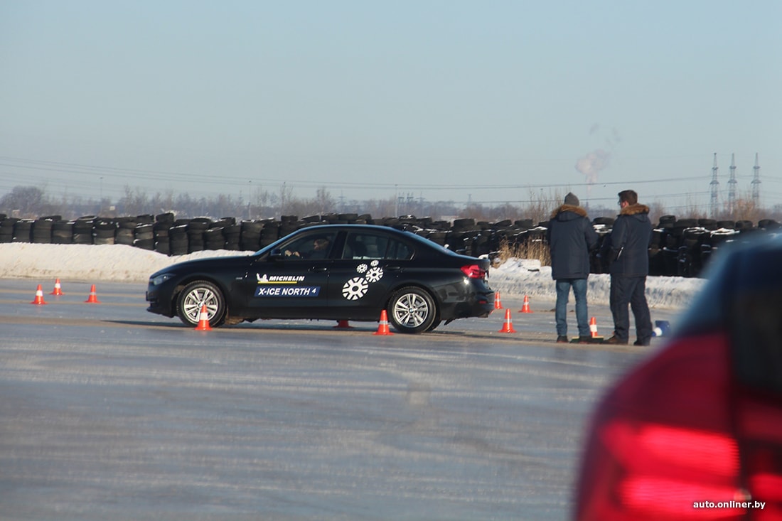 Остальные испытания стандартные — замеры тормозного пути и субъективные ощущения во время маневрирования. Признаться, хотелось поругать Michelin хоть за что-то, но не вышло. Буквально несколько кругов по обледенелой трассе разделили шиповки на два лагеря: отстающие Bridgestone и Continental и отличники Nokian и Michelin. Вроде бы одинаковая скорость, идентичная интенсивность торможения и поворота рулевого колеса, а машины ведут себя по-разному. Первая вгрызается в лед, рвет вперед на старте и держит траекторию, вторая буксует и отправляется в занос, сбивая ограничительные конусы. На льду разница тормозных путей между X-Ice North 4 и конкурентами — около двух метров в пользу «французов», прохождение круга — на три секунды быстрее.