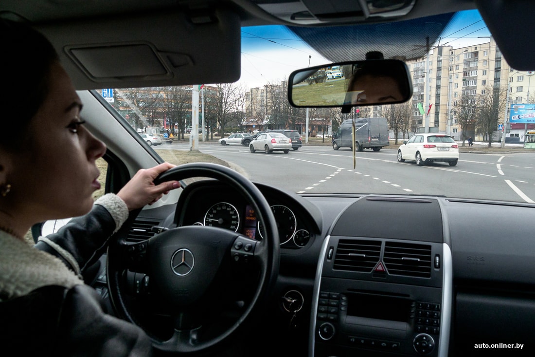 И жмет на педаль газа. Компактный Mercedes A-Class резво срывается с места, пассажиров вжимает в спинки сидений. Заходим на круг: задача — повернуть на 270 градусов, то есть с улицы Сурганова отправиться по улице Богдановича в направлении улицы Кульман. Водитель на информационную табличку не смотрит: организацию дорожного движения здесь она знает наизусть. Не все могут похвастаться тем же.