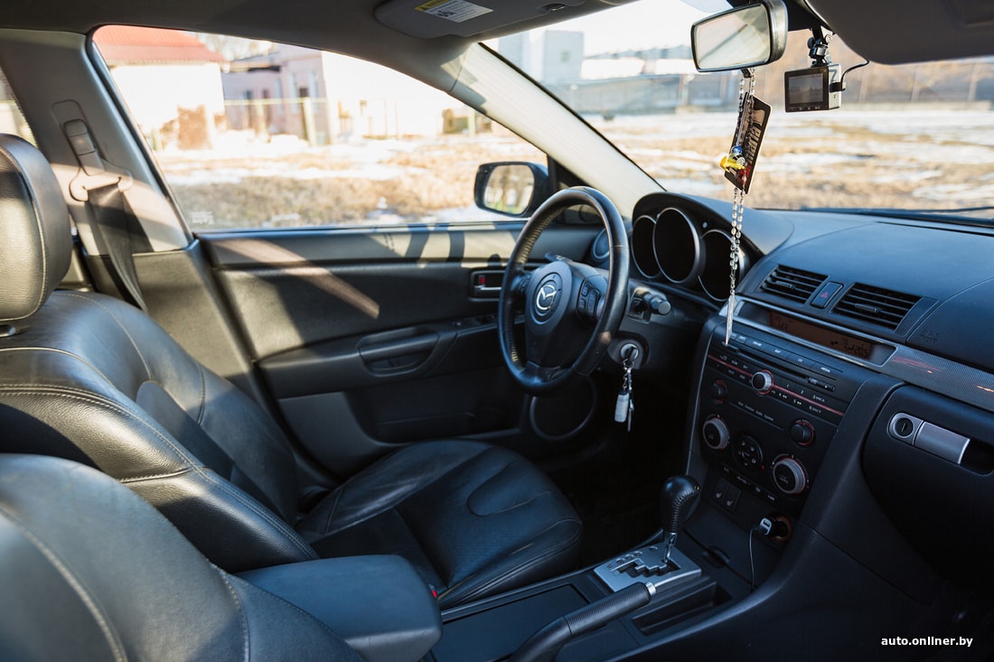 Молодой человек объяснил, почему в свое время отдал предпочтение именно этой модели. Считает, что для тех, кто мыслит так же, Mazda3 — отличный вариант: «Раньше ездил на старом Fiat Tempra, который достался мне от отца. А примерно полтора года назад амбиции взяли свое. Я искал нечто спортивное, с хорошим салоном, набором датчиков, с высоким уровнем комфорта и обязательно японское. Однажды в сети появилось объявление о продаже этой Mazda, выпущенной для рынка США. Через час после размещения новости о продаже я уже ехал на встречу. Сомнений не возникло — тут же забрал. Это был молодежный, мощный, с чипованным двигателем автомобиль. Первые семь месяцев никаких проблем не было — только бензин заливал. Машина уже столько проездила, а руль только немного начал стираться. Вариант оказался весьма достойным.