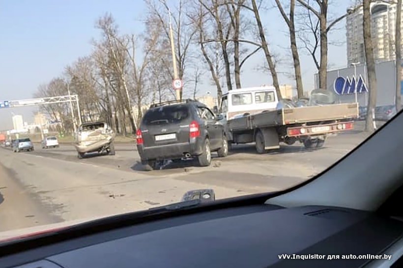 — Водитель автомобиля Hyundai Tucson, женщина 1956 года рождения, двигалась по крайней левой полосе МКАД. Перед ней стали замедляться автомобили. Она не успела вовремя снизить скорость и совершила столкновение с двигавшимся впереди автомобилем Opel. От удара Opel отбросило на проезжавший рядом Renault, а Hyundai врезался еще и в Lexus, — рассказала корреспонденту Onliner.by Любовь Трепашко.