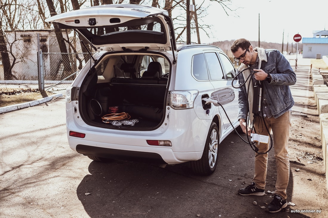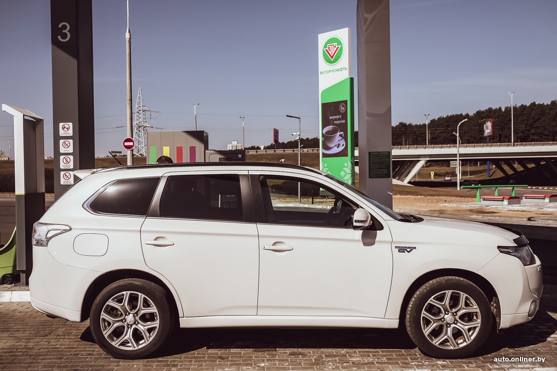 Читатели, часто катающиеся в Европу, наверняка видели, что такой Mitsubishi Outlander заряжается на тех же станциях, что и другие электромобили — нередко его можно увидеть по соседству с «Теслами» и «Лифами». Заряжать PHEV можно тремя способами: от обычной домашней розетки (около 5 часов), от Type 2 (есть переходник) либо от быстрых зарядок постоянного тока Chademo (шнур не нужен — он торчит из самой станции). В последнем варианте восполнить энергию можно буквально за пару десятков минут. Попил кофе и поехал. В РБ зарядки все еще бесплатные.