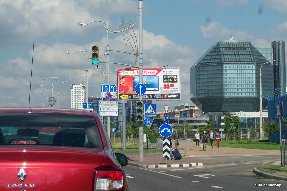 А как у нас? Мы решили проехать по главному проспекту Минска — Независимости. Стартуем от здания Мингорисполкома и сразу обращаем внимание на светофоры возле почтамта. Установлена Г-образная стойка, но она не совсем такая как, например, в Германии: вылет «перекладины» небольшой, а светофор, расположенный на ней, находится вблизи основного. Чем это чревато? Скажем, габаритное транспортное средство скроет сигналы обоих.