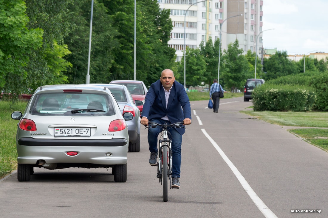 Юрий Краснов сам садится на велосипед и проезжает участок пр. Любимова (от ул. Рафиева до пр. Газеты «Звязда»). Вернувшись, он объявляет результат: «На тротуаре припаркован 21 автомобиль».