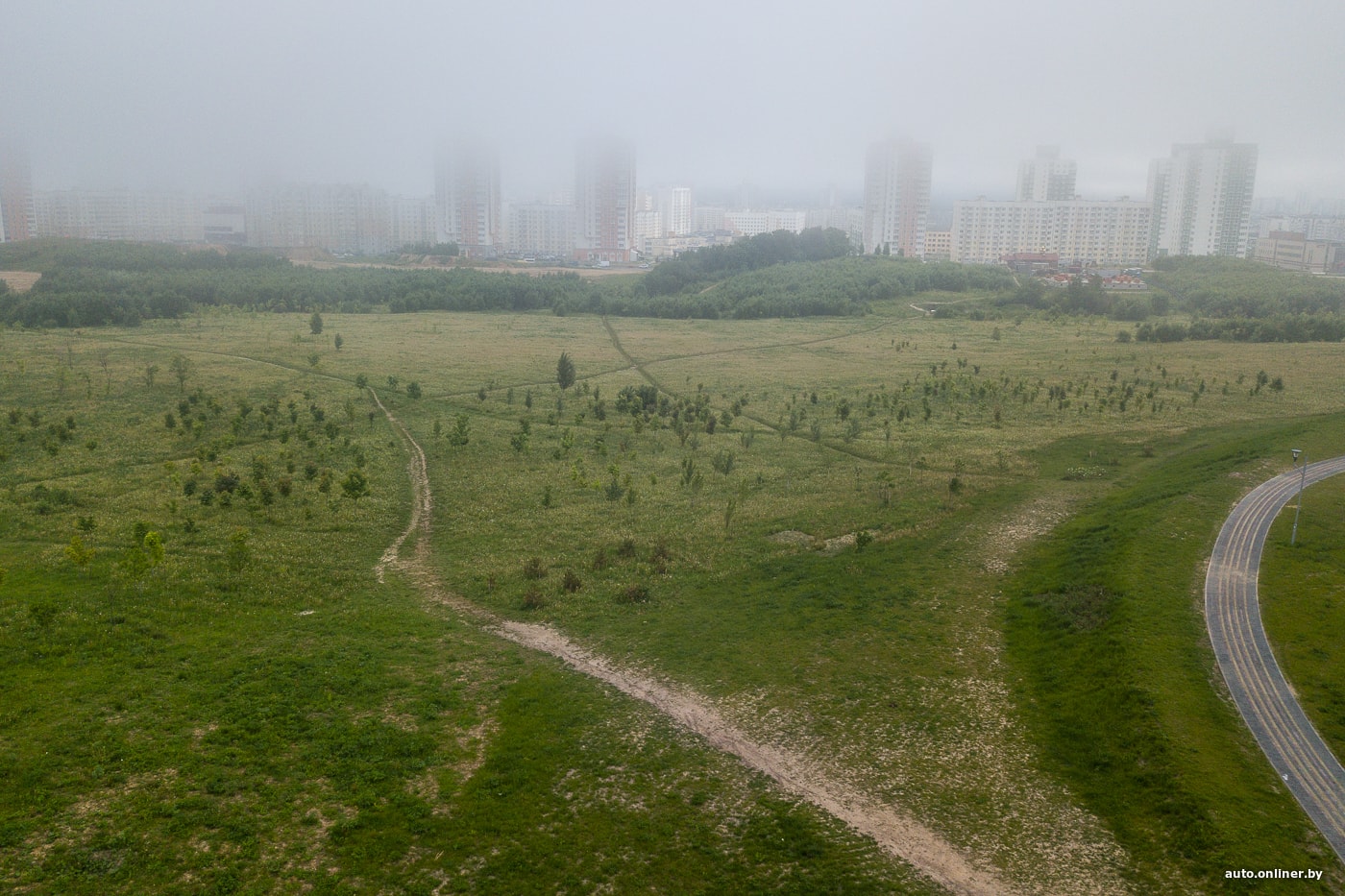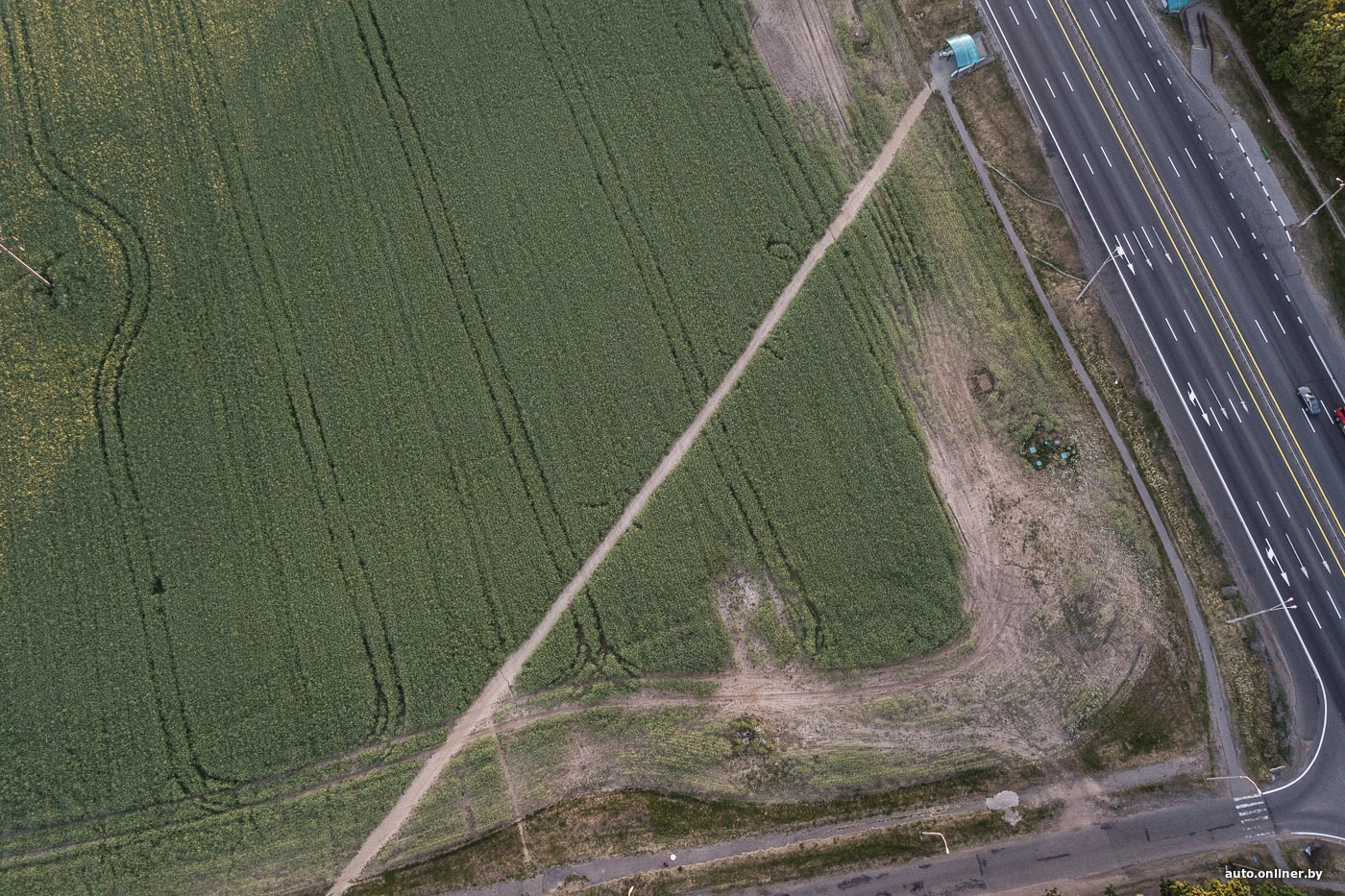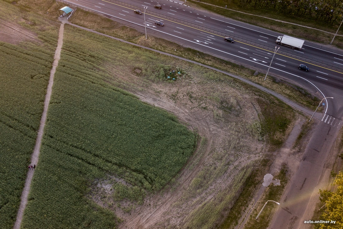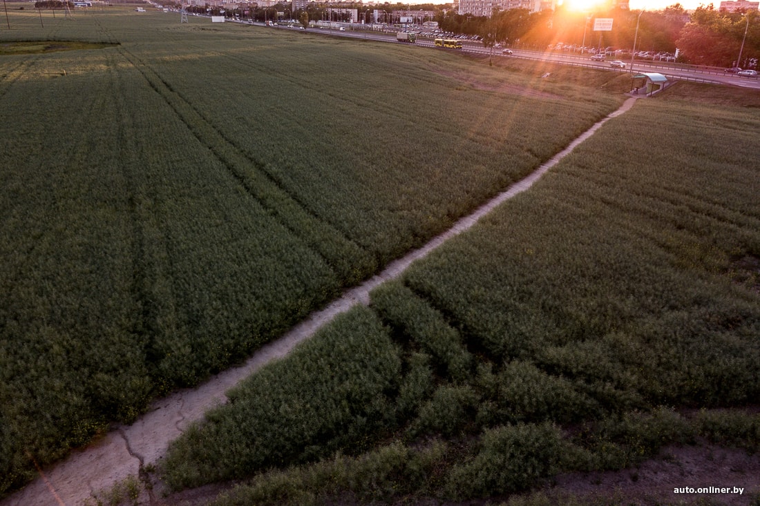 Еще более наглядное доказательство того, что люди склонны выбирать наикратчайший путь (удивительно, да?), даже если он пролегает через поле. Эти фотографии были сделаны непосредственно возле минской кольцевой дороги. Тропинка ведет от подземного перехода к Чижовскому кладбищу.