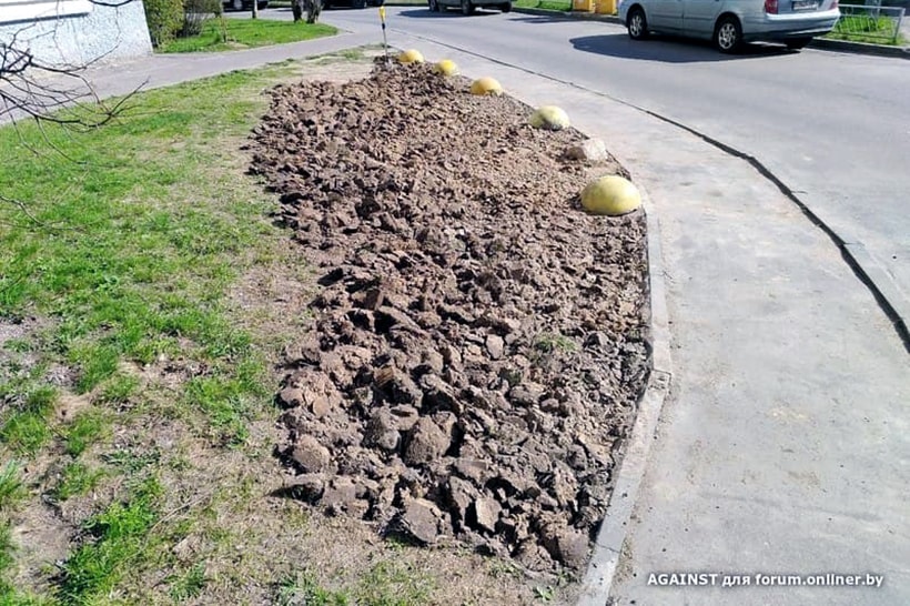 Вдохновленный успехом, AGAINST решил отстоять у водителей и участок зеленой зоны, где регулярно оставляли машины. Травы там уже не осталось, участок превратился в пустырь, откуда в холодное время года грязь распространялась по всему двору.