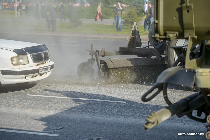Кстати, каждый раз военную технику сопровождает техника коммунальная. В ГПО «Горремавтодор Мингорисполкома» корреспонденту Onliner.by рассказали, для чего это нужно.
