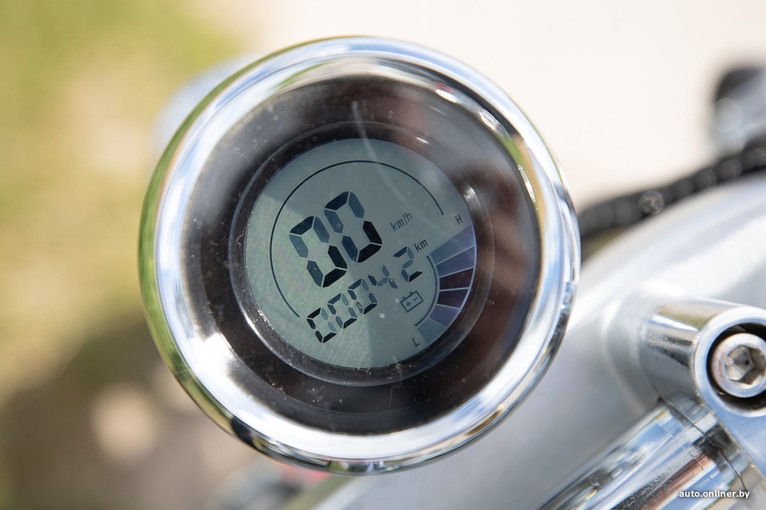 Привод у модели задний — электромотор (мощность 1500 Вт) расположен прямо в колесе. Тормоза у Band дисковые, имеется система рекуперации энергии. Аккумулятор емкостью 20 А·ч спрятан в подставке под ноги. Он не вынимается — придется хранить скутер в месте, где есть розетка. Заряжается батарея примерно за шесть часов. По официальным данным, запас хода у модели — 100 км. Здесь погрешность наверняка еще больше, чем у спидометра: 50 км скутер проедет разве что в идеальных условиях со множеством спусков и попутным ветром. За 10 км пути на бортовом компьютере пропало два из шести делений индикатора заряда. Одним словом, в Молодечно из Минска ехать не стоит.