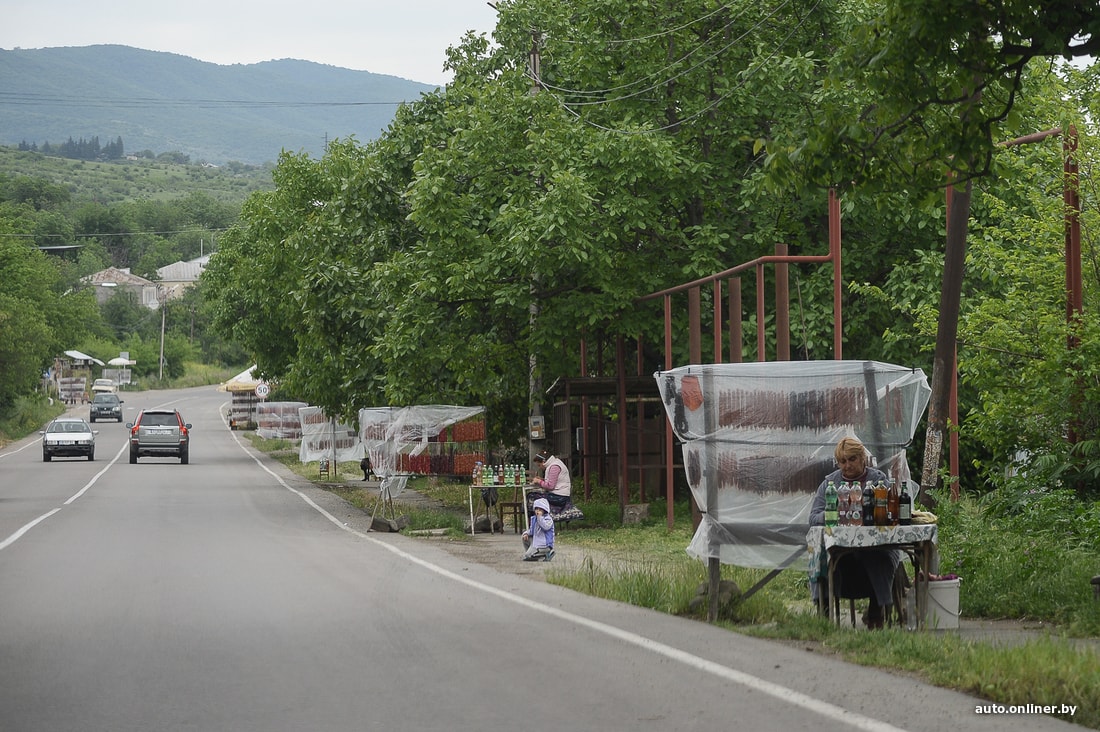 31. Весь этот набор железа для нас, приезжих туристов, всего лишь средство для достижения грузинской красоты. Той, которую редко где еще отыщешь, будь то Сванетия, Кахетия или Военно-грузинская дорога. Ради таких пейзажей сюда и едут. И не столь важно, в какое окошко вы сможете эту красоту увидать — потрепанного «мерса», серого «корейца» или крепкого «Жигуленка». Важно, что родом из эпохи больших надежд.