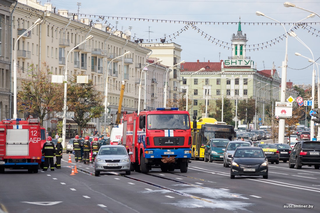 К ЦУМу выехали спасатели, на асфальте видны следы пены — возможно, для предотвращения возгорания после разлития воспламеняющихся жидкостей. «Сотрудники МЧС выехали для деблокировки, — сообщила Onliner.by Ольга Мельченко, представитель столичного МЧС. — Но в итоге наша помощь не потребовалась. На месте сейчас находятся спасатели для обеспечения пожарной безопасности».