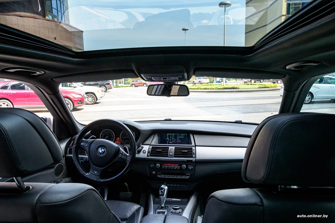 Предыдущий X5 Андрея предусматривал типовую комплектацию. Парень уверяет, что не снижал планку и в нынешней машине. «Динамик драйв, пневмоподвеска (более мягкая, чем на пружинах), 7 мест, адаптивные фары, автоматический дальний свет, отопитель с пультом, дожимы дверей, электробагажник, ТВ, жесткий диск на 20 ГБ, DVD в движении, — перечисляется в объявлении. — Активный круиз-контроль (дистроник), фаркоп (усиленный редуктор и полуоси), атермальное лобовое стекло, фотохромные зеркала, родная тонировка сзади, задний климат-контроль, музыка Individual (самая мощная — 800 Вт, 16 динамиков с идеальным звучанием), комбокс (музыка по Bluetooth и громкая связь), подрулевые лепестки АКПП, кожаное торпедо, панорамная крыша, комфортные сиденья с подогревом и вентиляцией, камера 360 градусов плюс боковые камеры в переднем бампере».