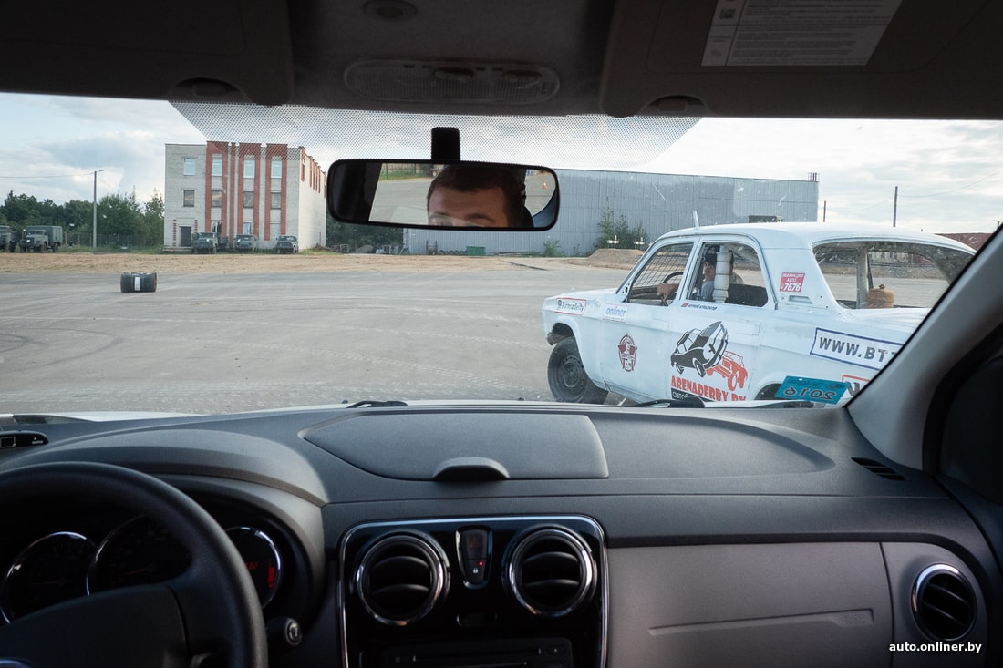 Краснов безошибочно выбирал траекторию на закрытой площадке, объезжая расставленные бочки и конусы. Он не потерял управления, использовал контролируемый занос, машина не заглохла. Разумеется, через некоторое время водитель уловил суть игры и даже вошел во вкус — сам погнался за бронетехникой. Но главное, в чем мы убедились, — инстинкты у Юрия в порядке.