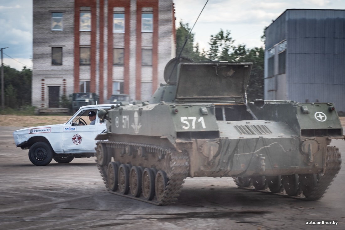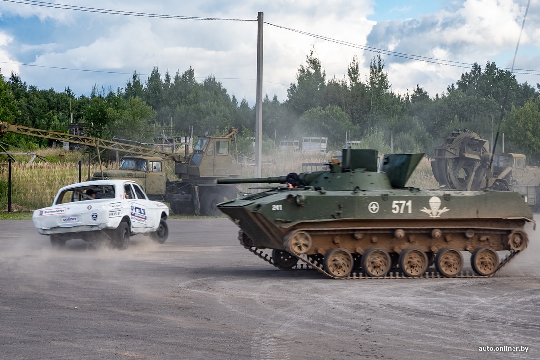 Его никто не предупреждал, эксперт последовательно рассказывал, как себя вести за рулем в той или иной ситуации. Внезапно раздался рокот, из облака поднятой пыли на площадке появилась бронемашина — БМД-1.