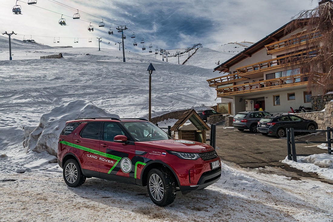 Затем нас вновь ждал перелет — на сей раз в Чили. Так вышло, что вторая точка-антипод находилась именно в горной стране. И тут вновь пригодились внедорожные качества машин. Смотрели маршрут заранее — на картах вроде бы нужная нам дорога представляла собой дублер. Ну, дублер в нашем понимании — просто узкая дорожка, идущая рядом с более комфортной. На деле выяснилось, что это чуть ли не тропинка, уходящая на 100 метров в высоту от основной магистрали: с одной стороны — скала, с другой — обрыв. Тем не менее, когда мы наложили китайский маршрут на карту Чили, оказалось, что прошли шесть антиподов. Здесь же, в горах, мы смогли немного подрифтовать на снегу.