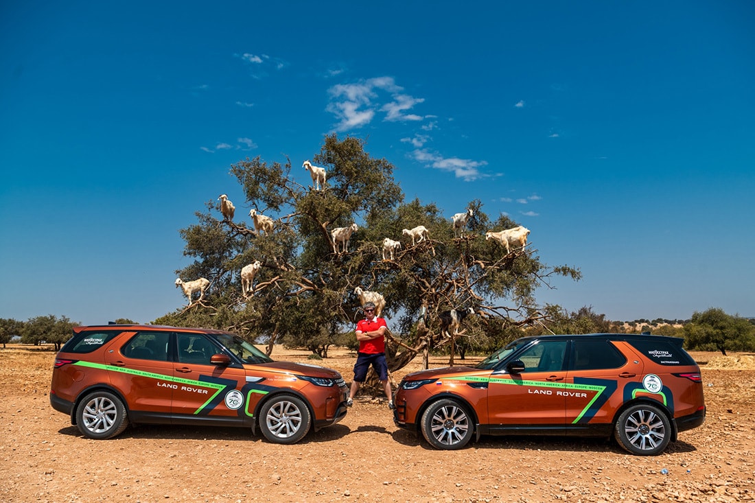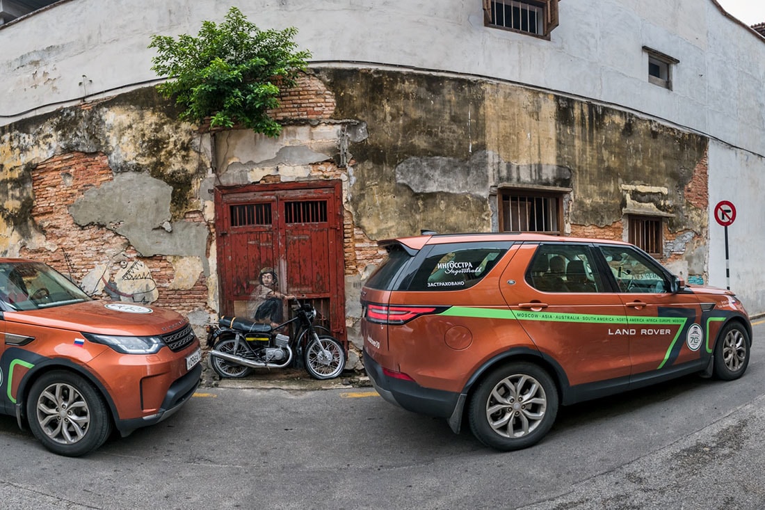 Шучу, мол, все затеяно для того, чтобы я отлично провел это лето. На самом деле компании Land Rover в этом году исполнилось 70 лет. Прицепившись к этому событию, мы решили: а почему бы не побить рекорд тайминга, описанный Жюлем Верном в книге «Вокруг света за 80 дней»? Причем сделать это исключительно на автомобилях — паре Land Rover Discovery (для меня и моей команды). На фотографиях можно видеть машины разных цветов. Действительно, авто менялись на разных континентах. Так пришлось поступить из-за длительных перевозок самих транспортных средств. Для понимания: кругосветка уже пришла к своему финишу, а корабль с машинами из Сингапура — финальной точки азиатской части пробега — еще плывет.