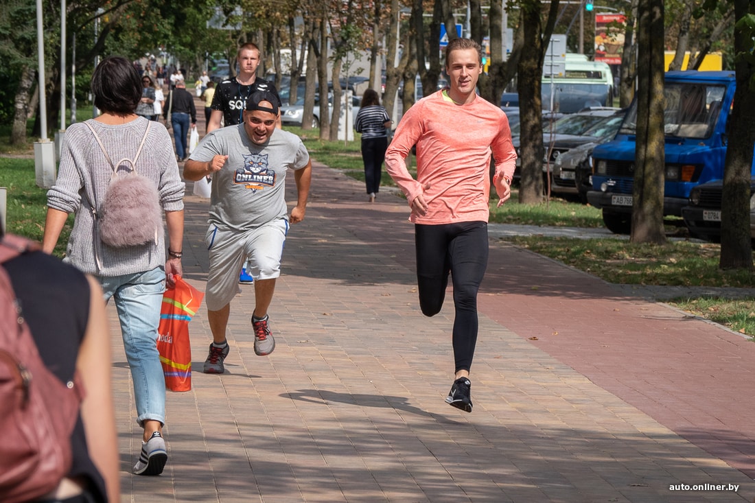 Но главное другое: реакция окружающих. У многих на лице явное недоумение. Что за погоня? Они спешат на троллейбус? Где-то пожар?