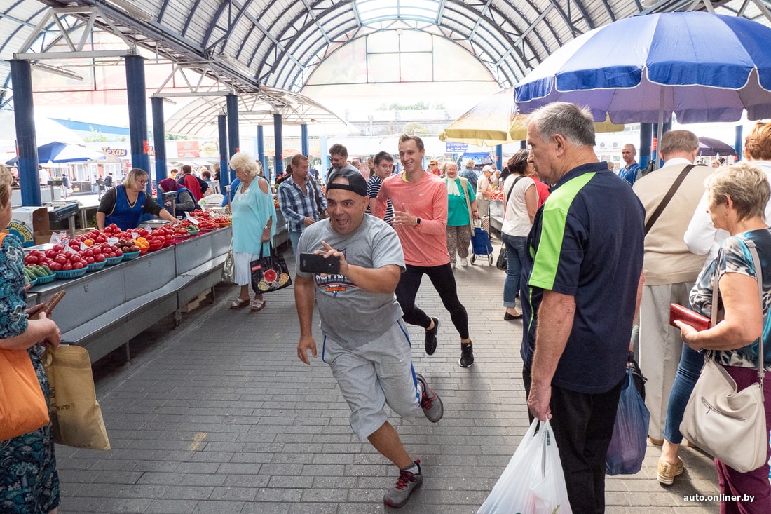 Говоря о бессмысленности и риске «шашечек», часто обращаются к такому сравнению: вы же в переполненном магазине не бегаете? Но никто не демонстрировал, как нелепо это выглядит со стороны. Корреспонденты Onliner.by решили исправить упущение: пригласили легкоатлета, который согласился, подражая торопыгам, быстро перемещаться в потоке пешеходов. Сразу оговоримся, что за время сюжета ни один человек не пострадал — профессиональный спортсмен всякий раз старался оставлять себе запас пространства и времени. Как проходил забег в помидорных рядах Комаровского рынка, читайте в нашем репортаже.