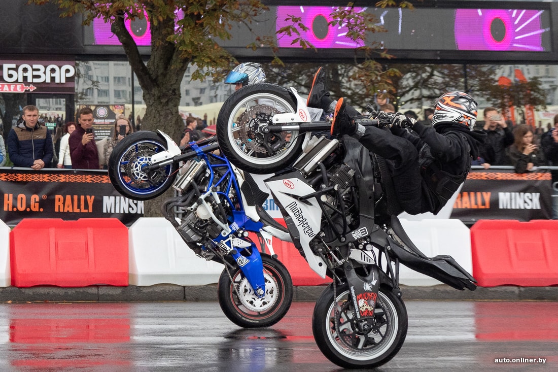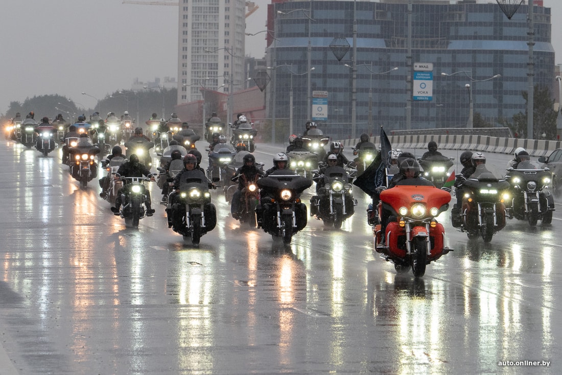 Сегодня в столице на фестивале H.O.G. Rally Minsk 2018 в третий раз собрались двухколесные единомышленники, чтобы закрыть мотосезон. Всего в мотопараде, который стартовал от Кургана Славы и финишировал возле минского Дворца спорта, приняли участие около 6 тыс. мотоциклистов. Колонну сопровождал эскорт ГАИ.