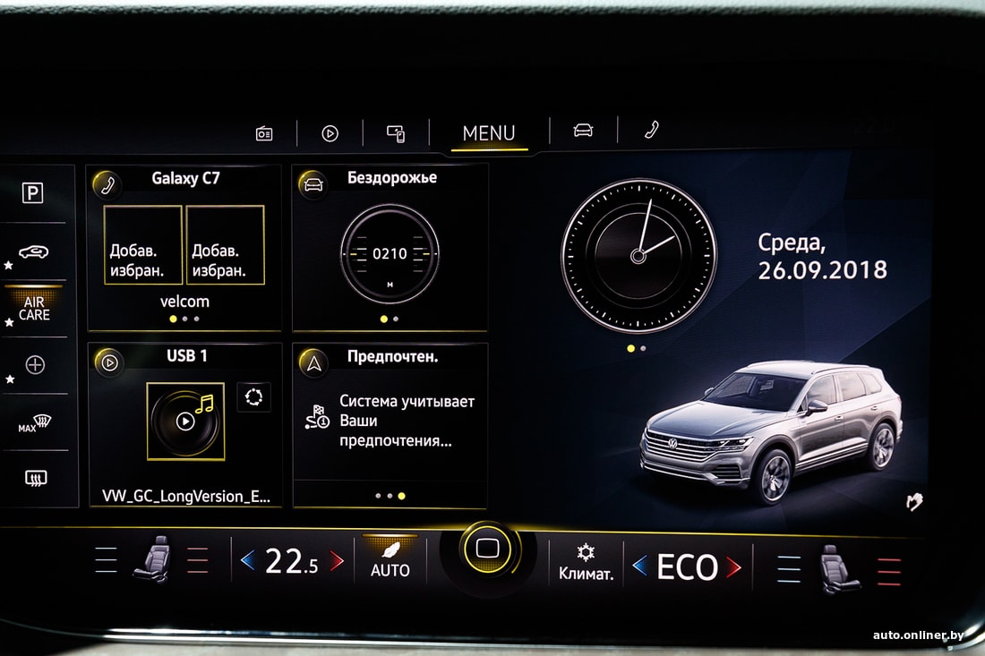 Конечно, все здесь «дорого-богато» и найти изъяны в качестве сборки или материалах отделки невозможно, но есть несколько вещей, которые нас смутили. В первую очередь есть нарекания на отклик мультимедийной системы. Работает она не так четко, как, например, в последних моделях Mercedes. Да и меню у премиальных немецких производителей (Audi, Mercedes, BMW) интуитивно более понятное. При этом у Touareg система лучше, чем у моделей Land Rover или Jaguar.