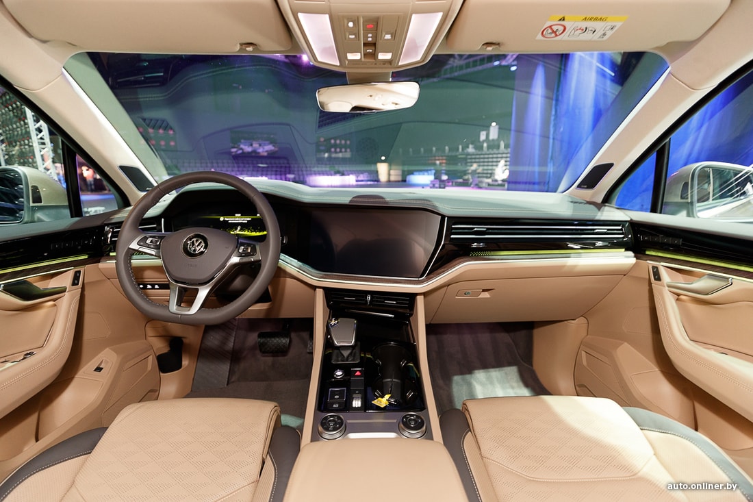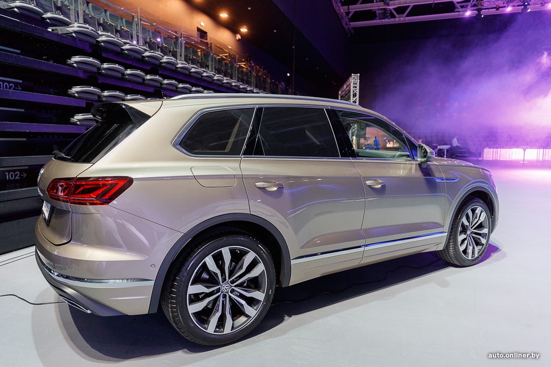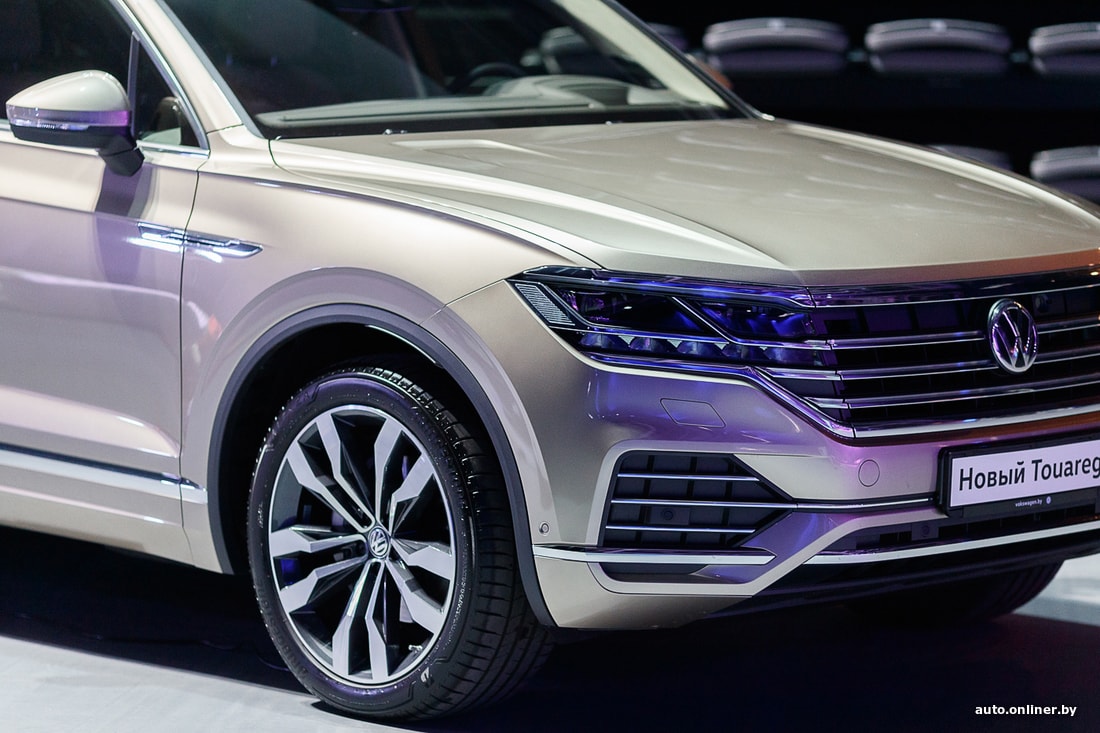 Для белорусского рынка на данный момент доступны две версии Volkswagen Touareg III: Business-line и R-line. Первая оснащается дизельным мотором, вторая — бензиновым. Оба агрегата имеют объем 3 литра, систему полного привода и 8-ступенчатый «автомат». Дизельный «Туарег» можно заказать в исполнениях Elegance и Atmosphere. Внешне они схожи, а вот в салоне отличаются материалами отделки и визуальной «теплотой».