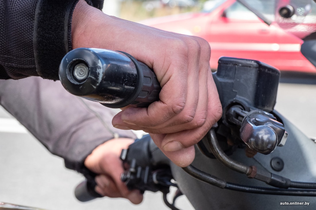 — Отрабатывали ошибки друг друга, — продолжает парень. — На втором занятии мне достался этот же мотоцикл. А на третье, которое проводилось 1 августа, «чоппер» оставили в сторонке и предложили «Минск» [по нашим данным, M1NSK RX200], на котором ранее занимался мой товарищ.