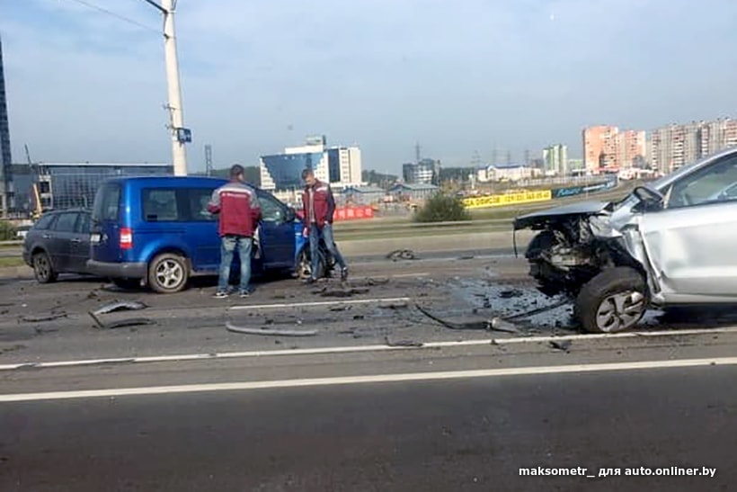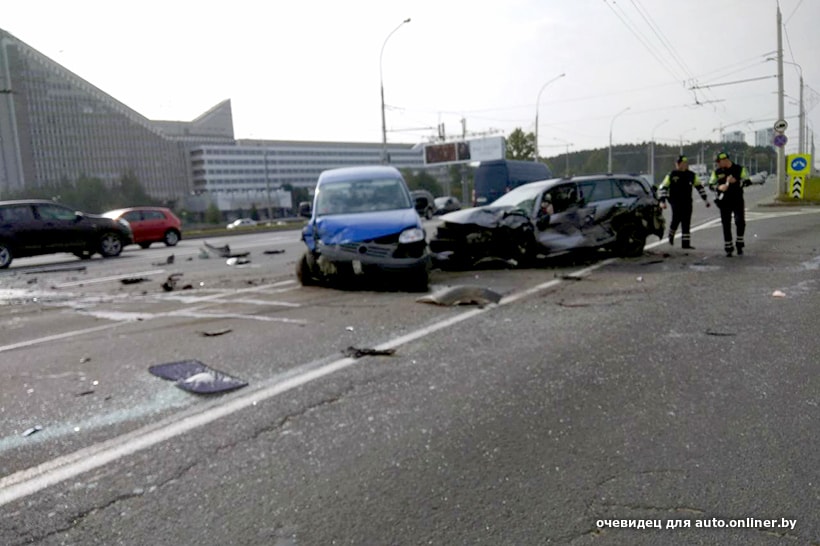 В ГАИ Минска корреспонденту Onliner.by сообщили, что ДТП случилось примерно в 10:35, столкнулись три автомобиля: Mazda 6, Kia Rio и Volkswagen Caddy. За рулем каждого авто был мужчина, всех троих увезли в больницу для оказания медицинской помощи. Пассажиров в авто не было.
