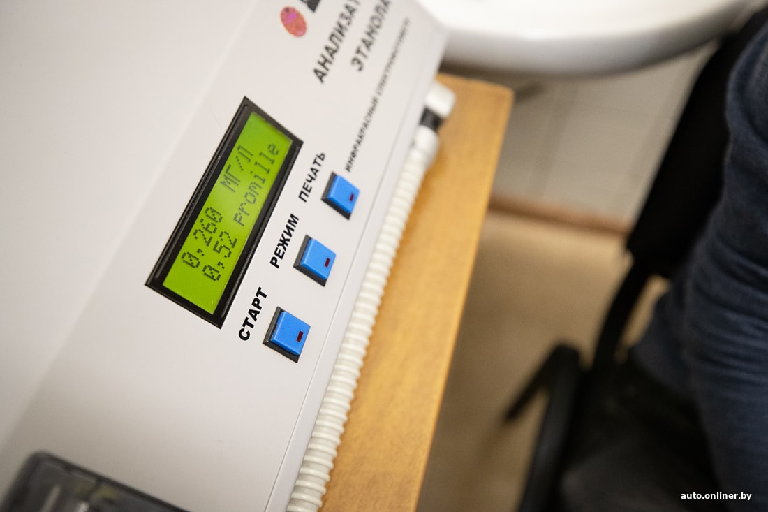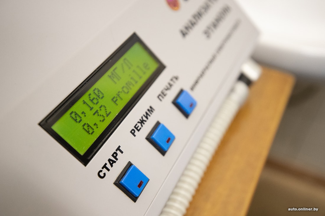 Остается проверка прибором. Антон набирает полные легкие воздуха. Выдох — 0,52 промилле. Это состояние алкогольного опьянения, при котором за руль садиться запрещено. Примерно такой уровень алкоголя в организме нередко обнаруживают на медосвидетельствовании у водителей, доставленных сотрудниками ГАИ.