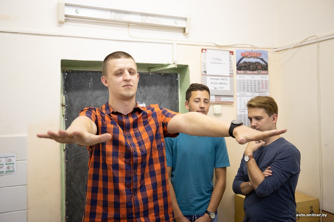 Мероприятие проводится в стенах отделения городского наркодиспансера, куда периодически доставляют граждан, внешний вид и поведение которых говорят сами за себя. Руки закованы в наручники: чтобы не навредили ни себе, ни другим. Профессиональные медики оценивают внешний вид, проводят исследование с помощью специального прибора и выдают заключение. Наши ребята не раз пройдут подобное медосвидетельствование в полном соответствии с методикой и инструкциями.