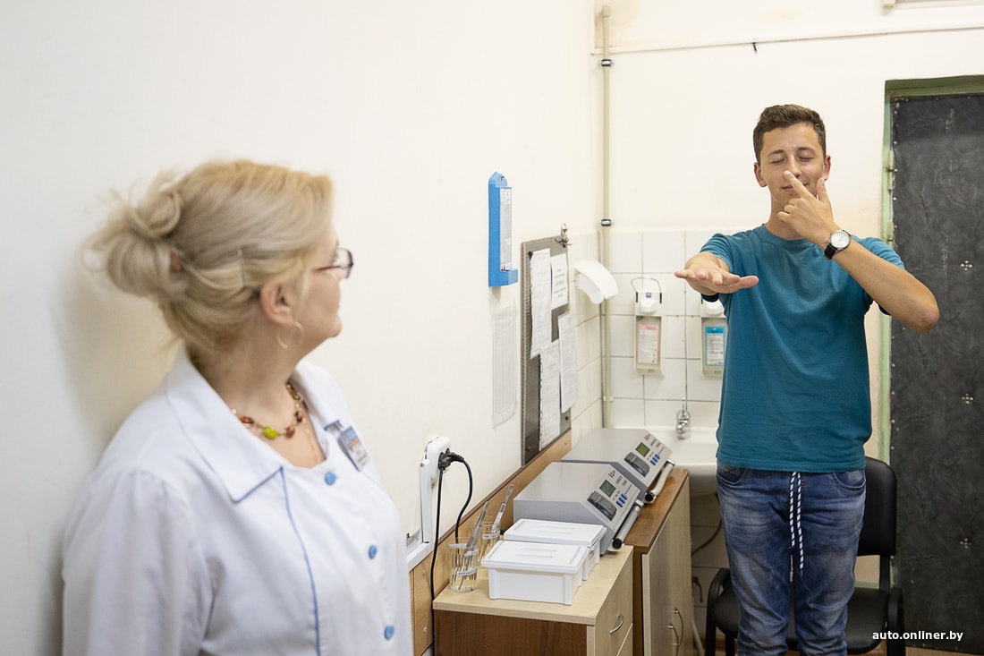 — Соберитесь, дуйте в трубочку. Еще-еще, смелее, — подбадривают врачи во время проверки.
