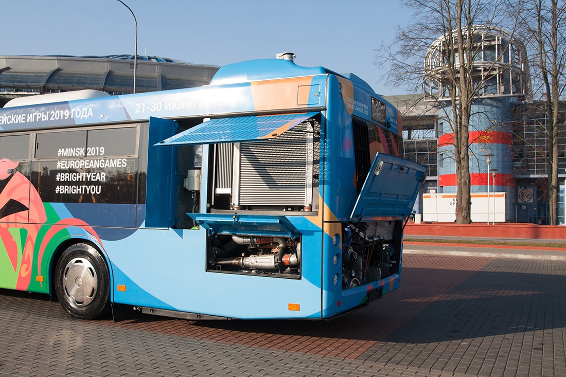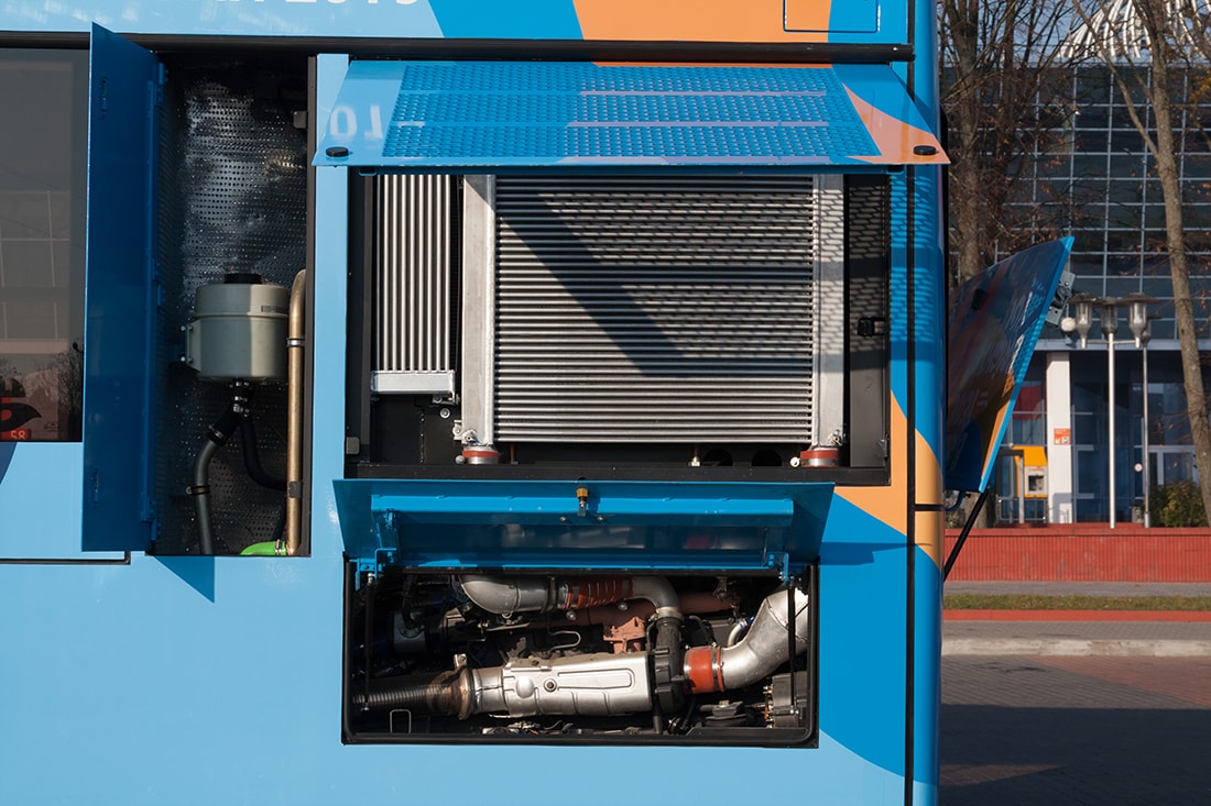 Автобус оснастят 326-сильным двигателем от Mercedes (Daimler AG OM 926) класса Евро-5 и автоматической коробкой передач Allison (T375w/Ret). Предельная скорость ограничена на отметке 85 км/ч. Для стран Евросоюза, где другие экологические требования, автобусы будут комплектовать моторами класса Евро-6.