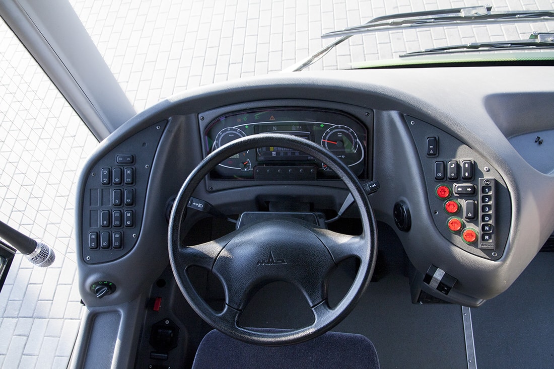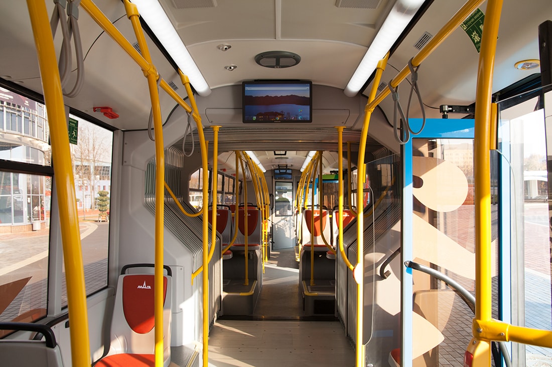 Новый автобус сделан полностью низкопольным — высота ступеньки над уровнем дороги составляет 34 см, а при использовании книлинга — 27 см.