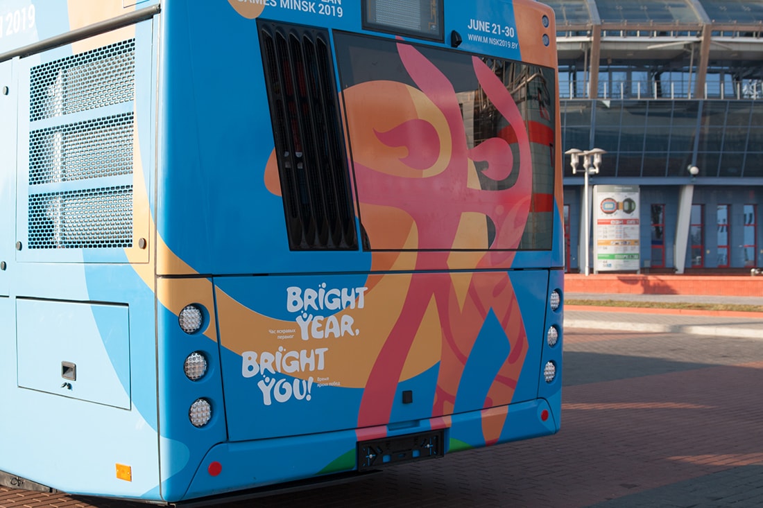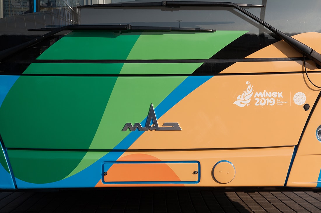 Новый автобус изготовлен всего за полгода. Работы стартовали весной в Дзержинске, где был сварен каркас, а окончательная сборка осуществлялась в цехах Минского автозавода. Первый экземпляр символично раскрашен в цвета Европейских игр — 2019 в Минске, во время которых пассажиров будут перевозить именно автобусы МАЗ.