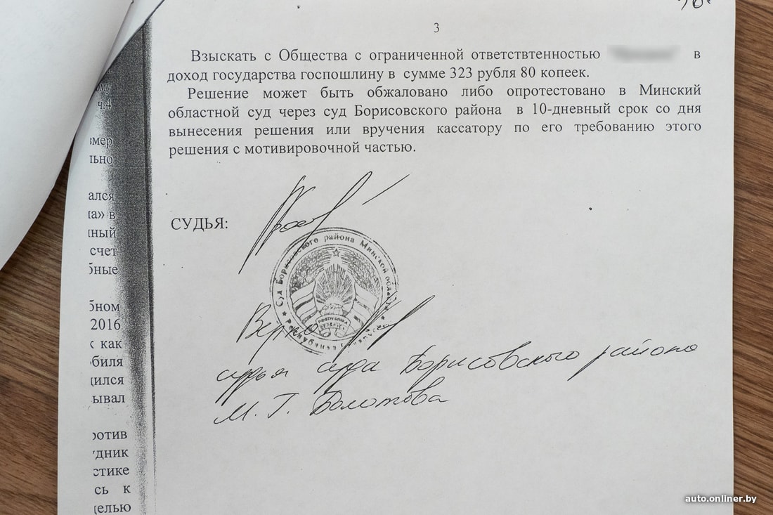 «Я ждала окончательного решения, чтобы рассказать эту историю как назидание всем автомобилистам: не бойтесь отстаивать свою правоту в суде и требовать возмещения убытков», — в редакцию обратилась жительница Борисова, которая в одночасье лишилась средства передвижения.