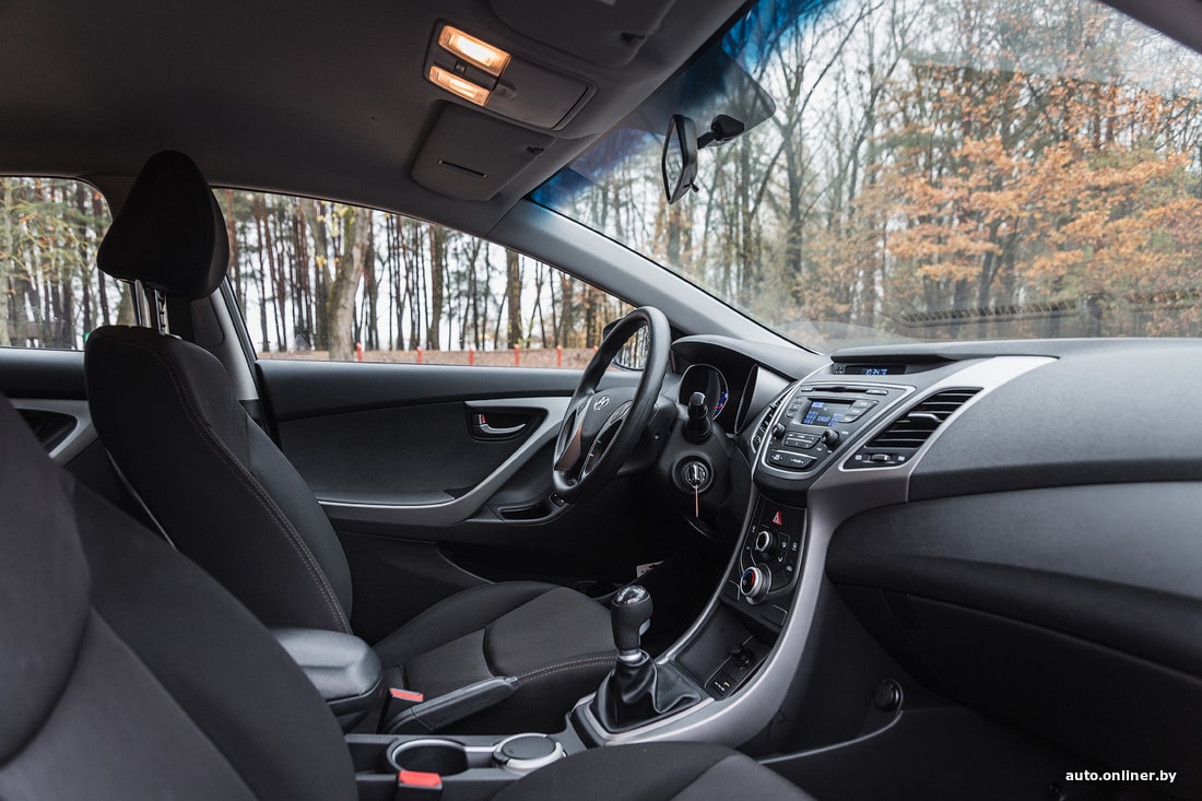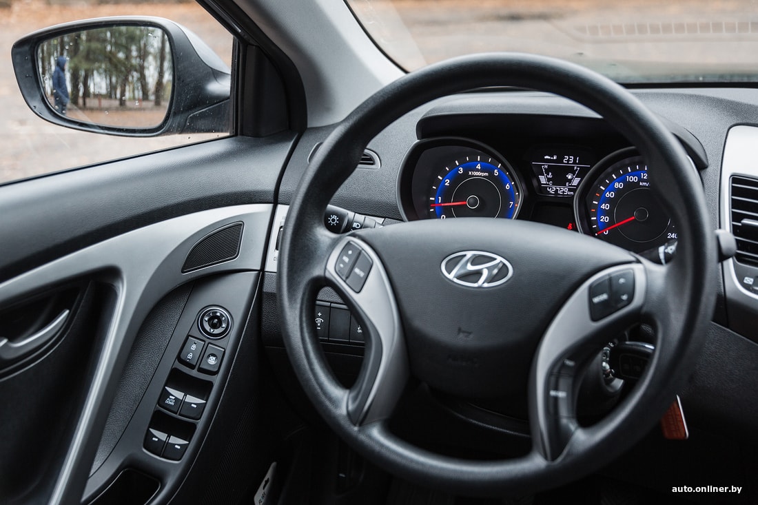 Попытался найти что-то на российском рынке. Однако все более-менее хорошие модели забирают местные покупатели и перекупы в первые часы после появления объявления в сети. Потому фильтр уперся в одно требование: машина должна быть из Беларуси, куплена у дилера. Так в поле зрения попала Elantra. На момент покупки (декабрь 2016 года) «одноклассники» стоили примерно на одну тысячу дороже — предполагаю, из-за корейской сборки, отсутствия локализации в ТС. Но я отслеживал объявления и в момент, когда ценник на один из вариантов опустили, ухватился за него. Пробил VIN — в авариях этот Hyundai не участвовал. На дилерском сервисе подтвердили пробег в 19 тысяч км. Сейчас на одометре 42 тысячи километров.