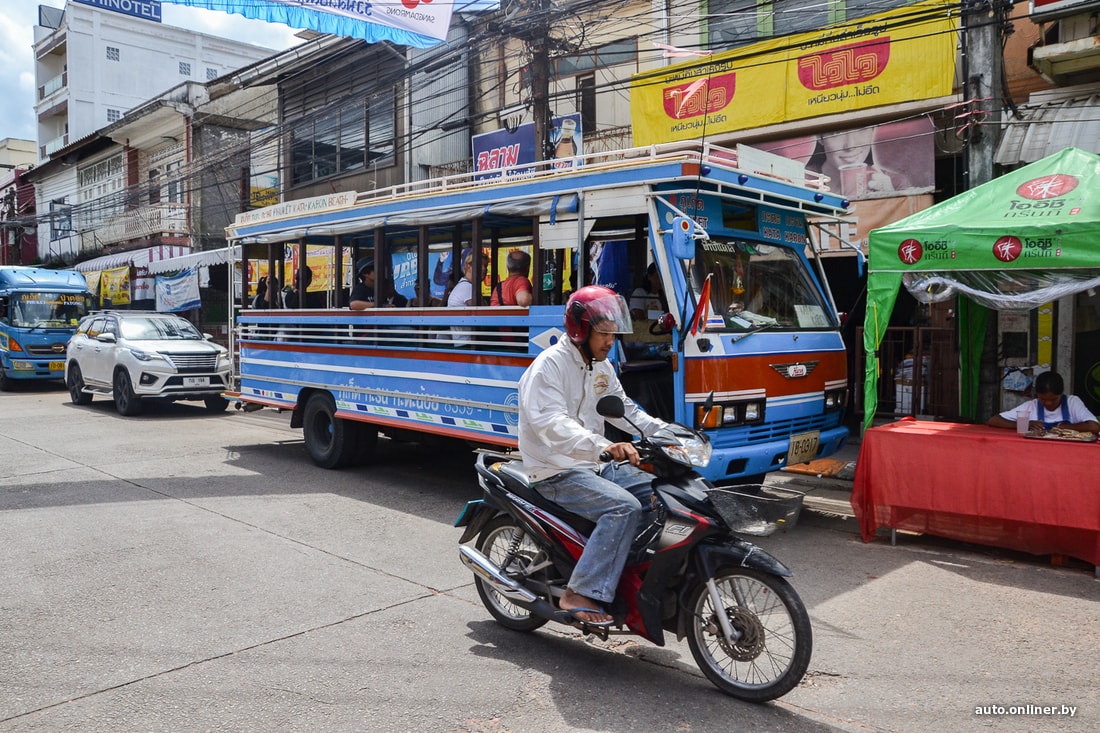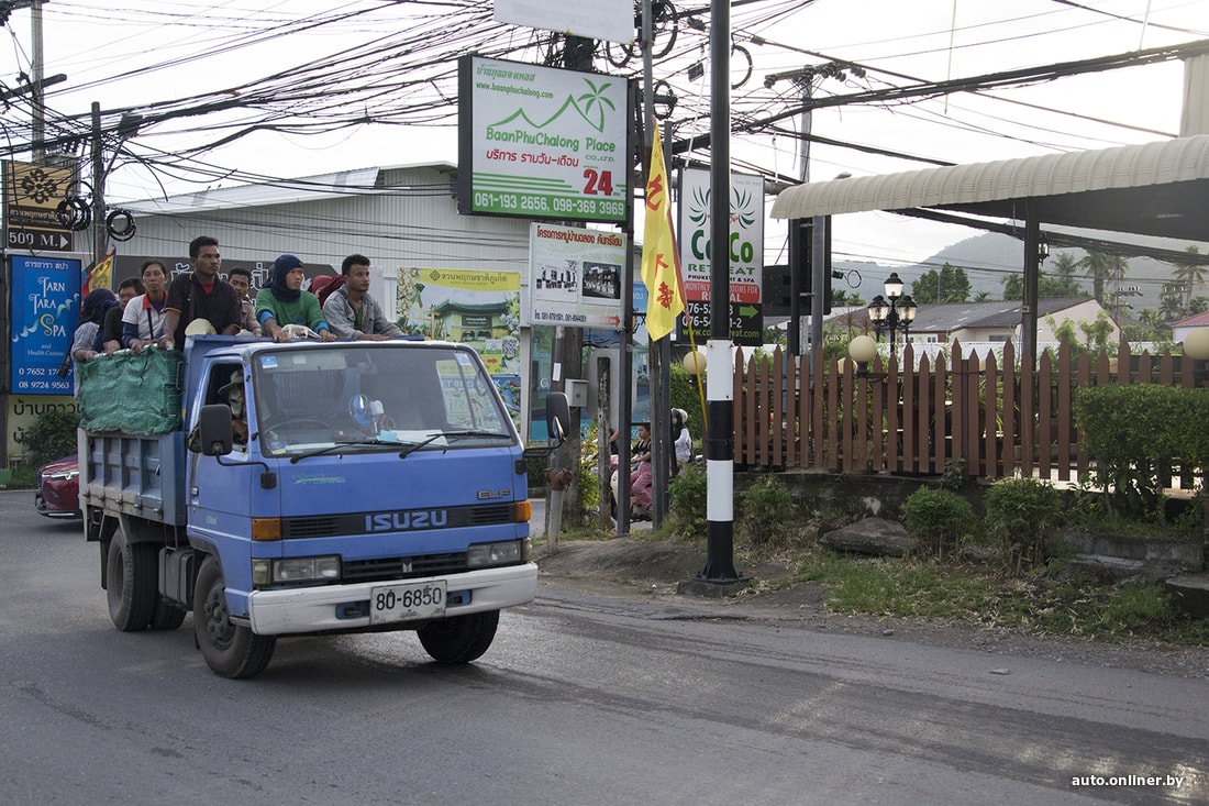 Таиланд — страна пикапов, их на дорогах здесь пруд пруди — совершенно разных моделей и годов выпуска. В кузове тайцы могут возить всю семью, грузы, животных — в общем, авто на все случаи жизни. Из марок на дорогах очень много Honda, Isuzu, Toyota. Авто вроде Ford или Chevrolet довольно редки.