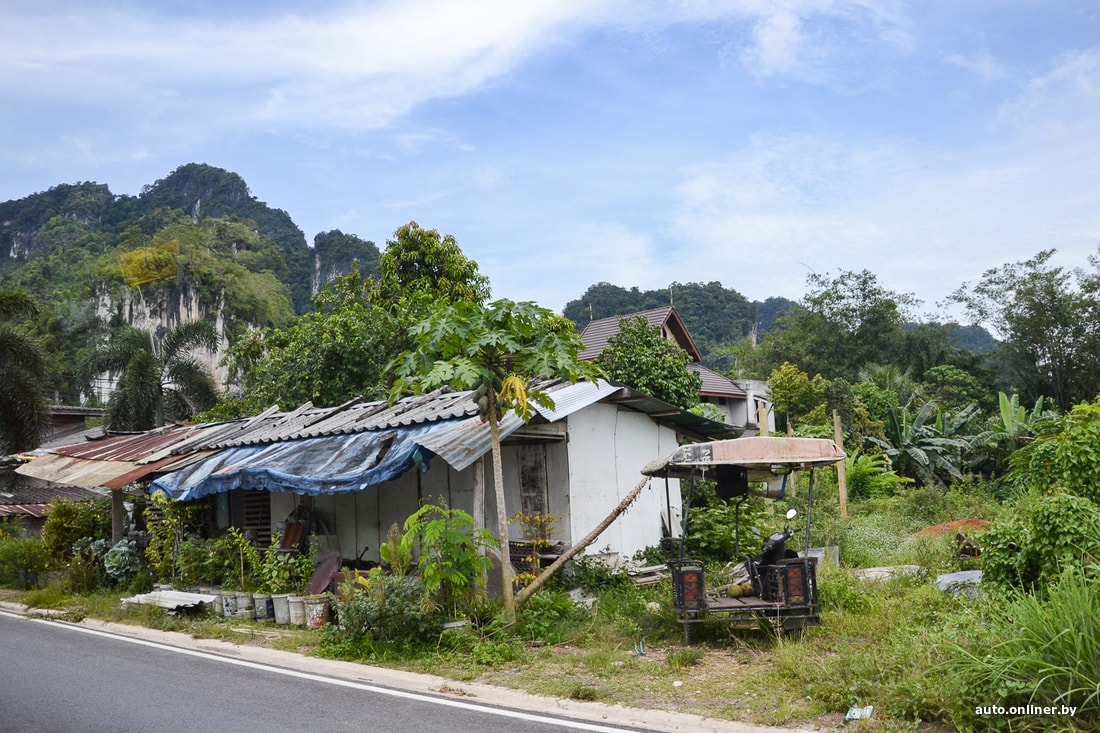Первое, на что обращаешь внимание, когда начинаешь ехать по тайским дорогам, — это буйство зелени. Она пытается прорваться всюду: вот обвила только что поставленный дорожный знак, тут пытается пробиться сквозь рекламный щит. Дороги, которые идут через пальмовые и каучуковые рощи, петляют по горам и приоткрывают красоты страны: то притаившийся небольшой храм, то ухоженный домик вынырнет из-за поворота.