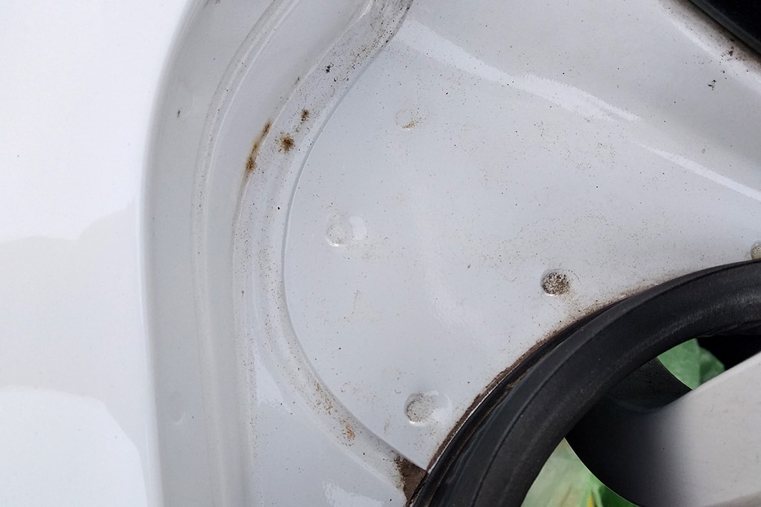 — Крыло рихтовали, и для доступа пришлось надрезать усилитель, — объясняет Александр Филистович. — Затем его подкрасили. Это внутренняя часть элемента, снаружи ничего не видно. Но когда владелица со спутником отогнули коврик, то увидели, что он подкрашен, и их это не устроило. Мы это также постарались устранить.