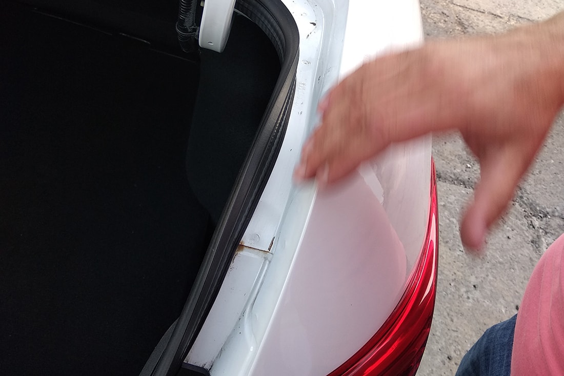 — Когда мы сняли некоторые кузовные элементы, чтобы исправить данный недочет, то выяснили: судя по характерным следам ремонта и покраски проема багажного отсека (там даже кое-где заметны следы коррозии), автомобиль ранее побывал в еще одном ДТП. Тем не менее кузовщики работали три дня, чтобы выполнить пожелание клиентки (выровнять зазоры), и, на мой взгляд, получилось хорошо.