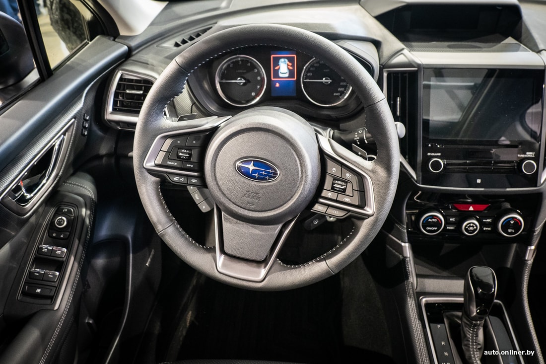 В столицу приехал обновленный полноприводный Subaru Forester. Новая платформа, только атмосферные двигатели, только две педали, только электромеханический ручник, шаг в сторону спортивности — вот основные нововведения. На нашем рынке представлены варианты с 2,0- и 2,5-литровыми моторами (150 и 185 л. с. соответственно). Стоимость самого доступного варианта — $30,8 тысячи в эквиваленте, за комплектацию Premium просят $40,4 тысячи.