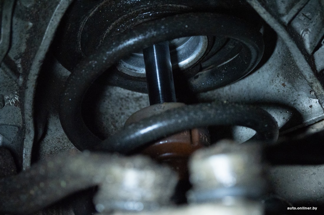 При осмотре подвески обнаружили повреждение пластиковой защиты порогов, запотевание сальников штока переднего амортизатора.