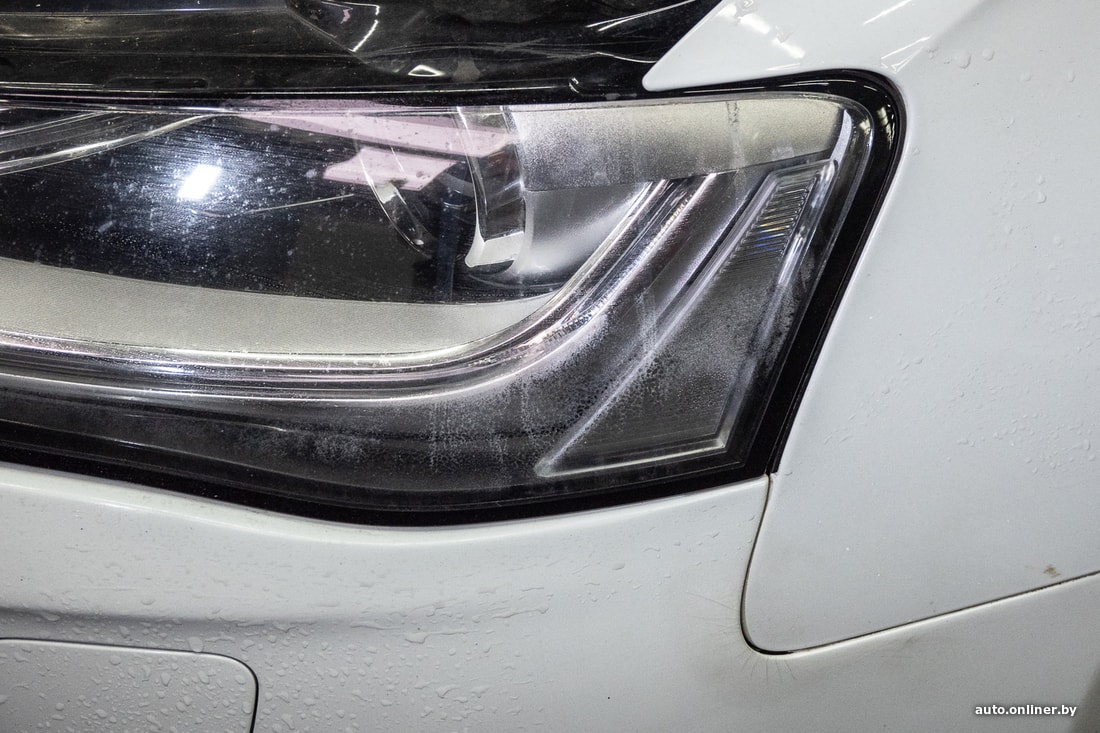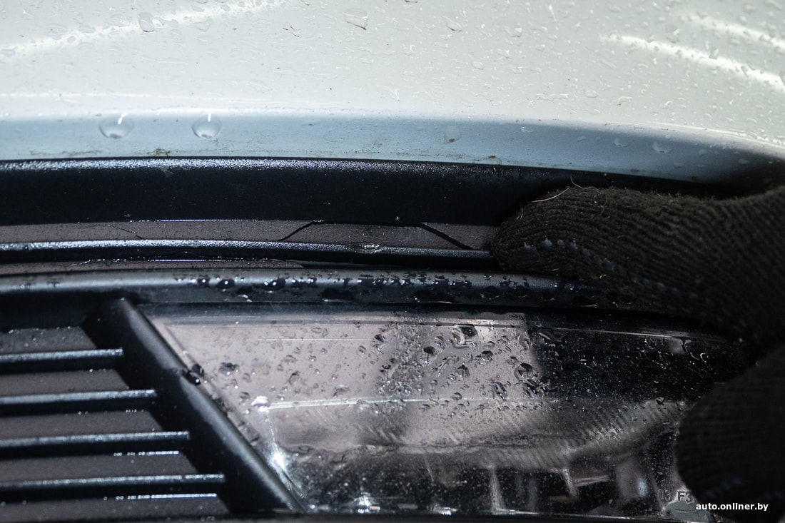 Внешний осмотр дал понять, что передний бампер не заводской, был покрашен, передние противотуманные фары также не родные. Кроме того, наблюдается запотевание левой передней фары.