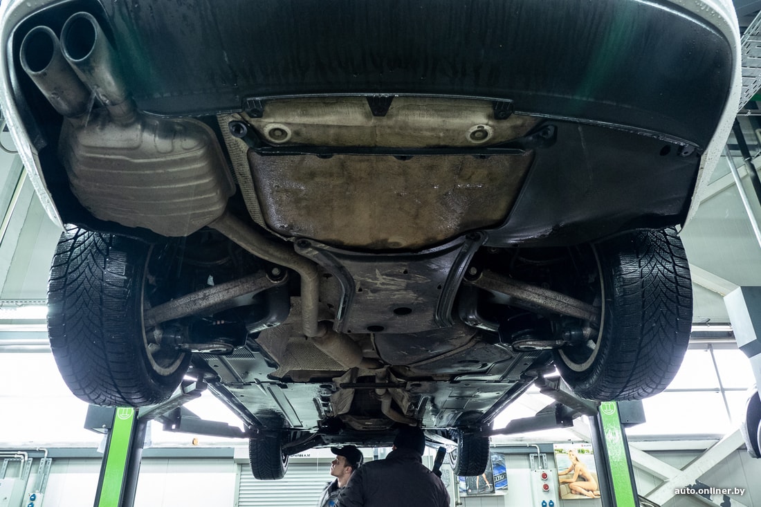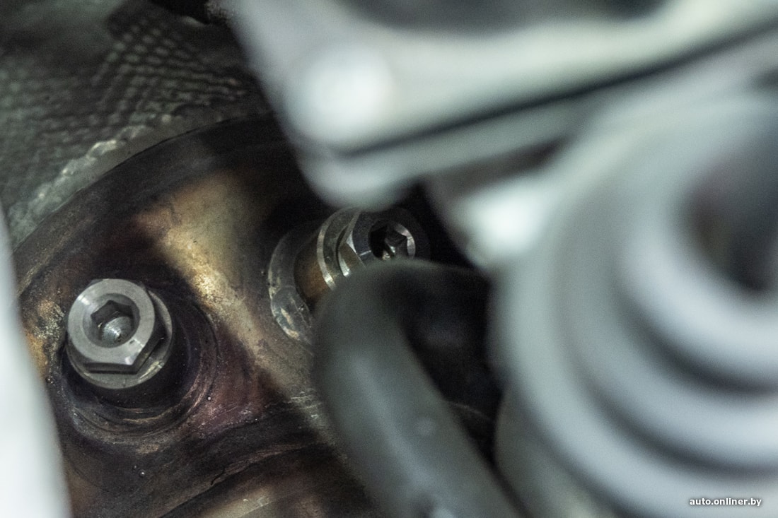 Практически сразу после того, как на станции был поднят капот, возникли подозрения, что из системы выпуска был удален сажевый фильтр. Специалисты СТО заметили заглушки.