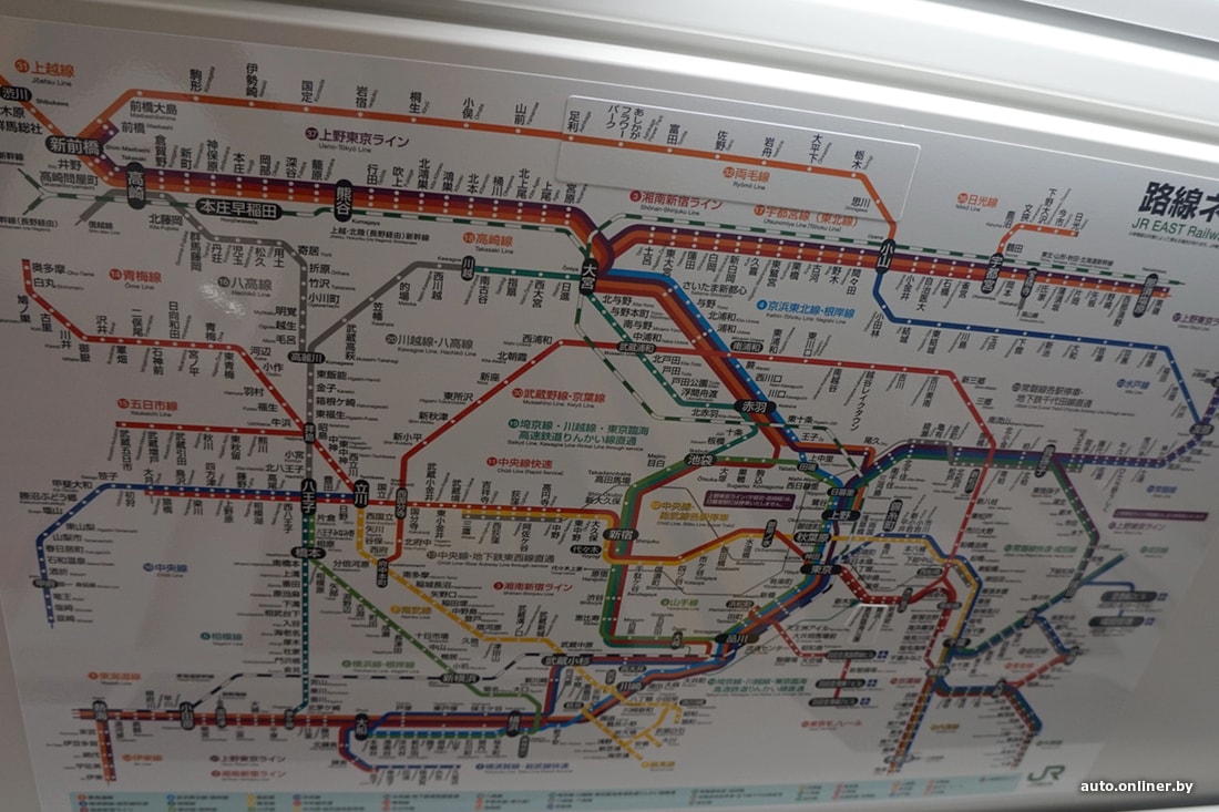 В вагонах электронные табло на японском и английском, часто с указанием того, с какой стороны откроется дверь, и картой выходов в зависимости от того, в каком вагоне вы едете.