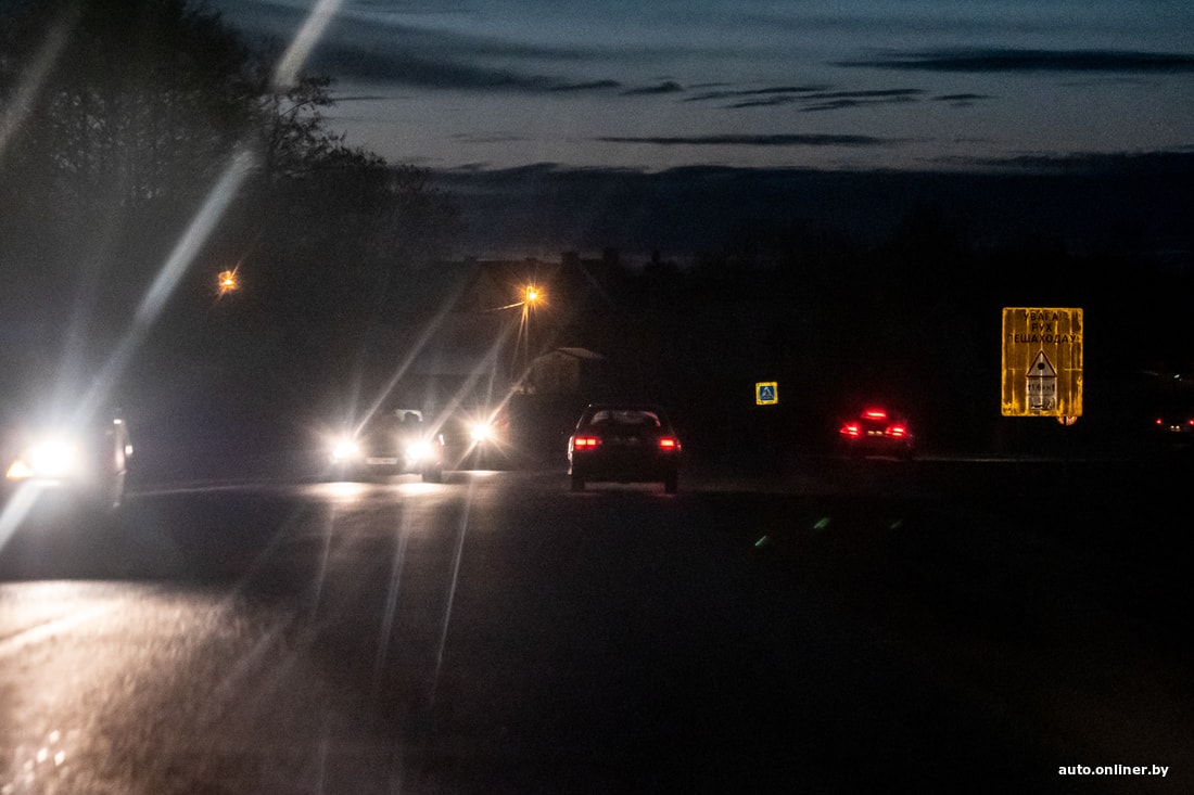 Вместе с начальником ГАИ Минского района Иваном Кузьменко мы едем по дороге от Заславля к агрогородку Петришки. До столицы отсюда рукой подать — на горизонте видны огни Каменной Горки. А у нас здесь хоть глаз выколи — освещения на дороге почти нет.