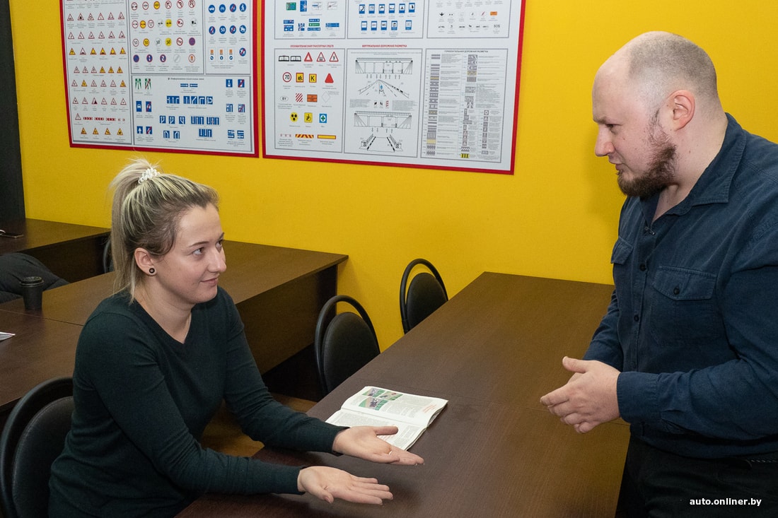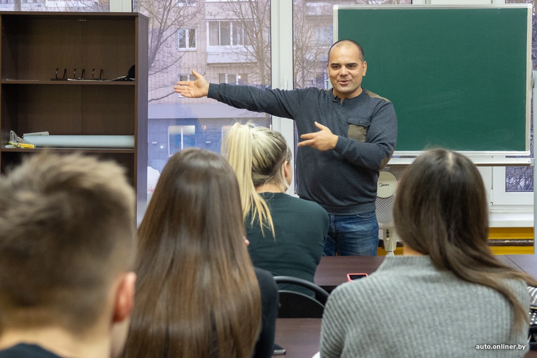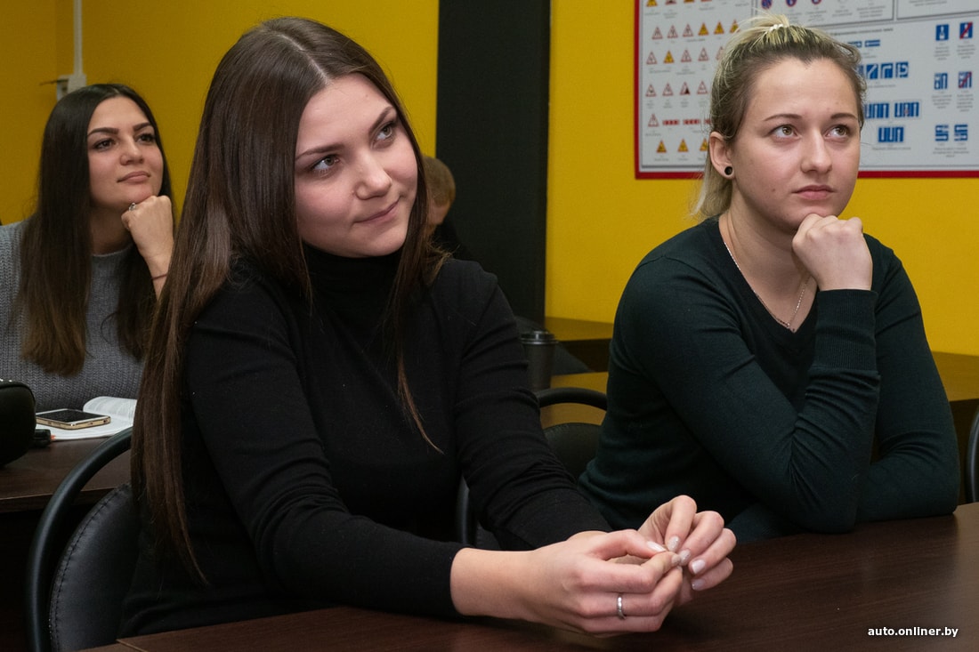 Парни в аудитории долгое время держали оборону, явно выражая скепсис. Наконец вызвался и один из них. Свое желание получить водительские права объясняет исключительно прагматичной целью — не хватает времени решать деловые вопросы.