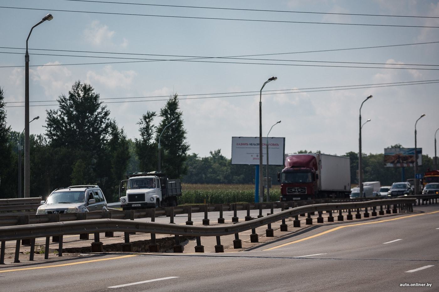 Но самым заметным стало перекрытие движения на МКАД — 1 августа в районе пересечения с Игуменским трактом лопнула балка путепровода. В результате конструкция просела. В выводах комиссии Мингорисполкома, обследовавшей строение, первопричиной произошедшего назван большегрузный транспорт, не соблюдавший ограничения.